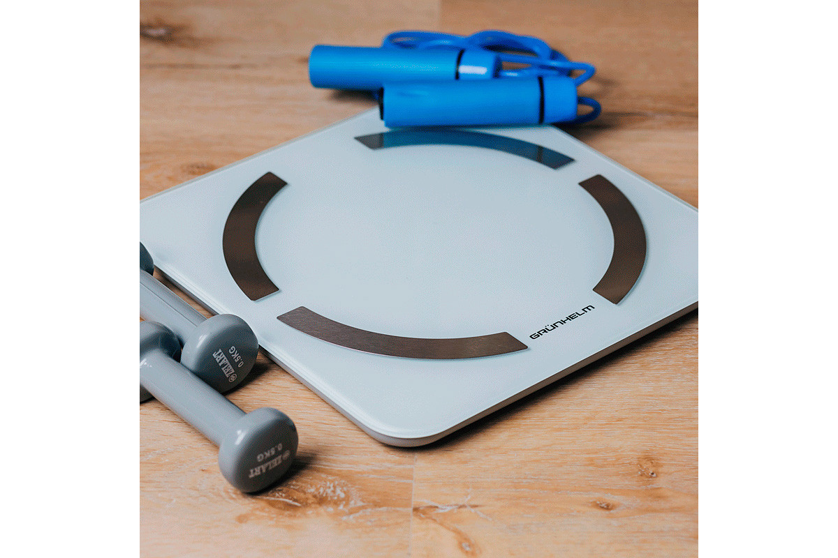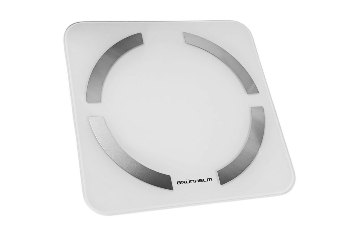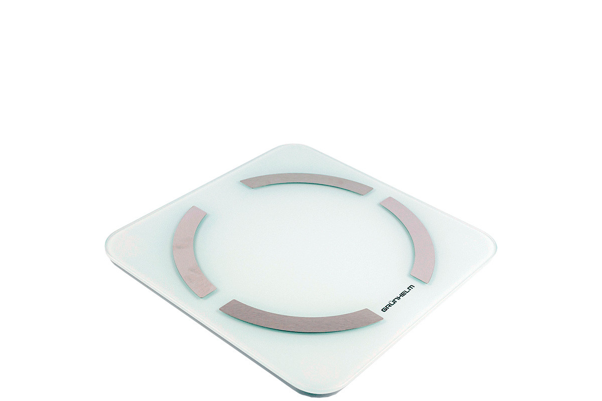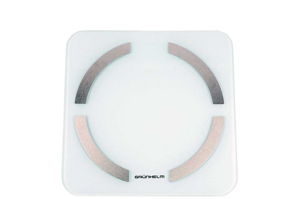 Підлогові ваги GRUNHELM BES-32BFS управляються електронно за допомогою сенсора, всі дані відображаються на дисплеї. Є можливість підключення до Вашого смартфона через Bluetooth. Завдяки біоімпедансного аналізу можна з'ясувати масу тіла, індекс маси тіла, кількість жиру та води, м'язів, кісток, калорій. Панель розміром 30х30 см виготовлена з загартованного скла 5 мм із чотирма металевими пластинами, знизу вставки з ABS пластику. Максимально допустима маса зважування 180 кг, дискретність вимірювання 0.1 кг. Для зручності можна виставити вимір у кілограмах, фунтах, стоунах. Такі додаткові функції, як індикатор перевантаження, низького заряду та автоматичне вимкнення спростять використання ваг.