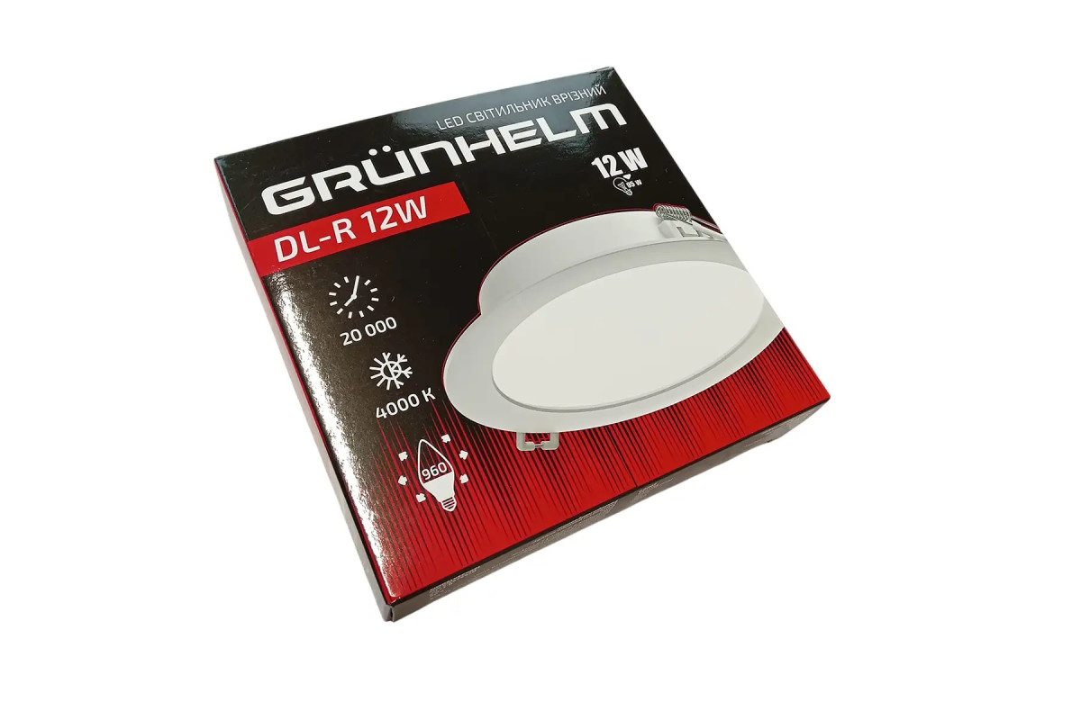 12 місяцяCвітильник LED круглий врізний - DL-R 9W 120х29.5 мм Grunhelm заощадить від 900 кВт/год. за весь строк служби лампи. Не містить ртуті, безпечна для дітей і дорослих.