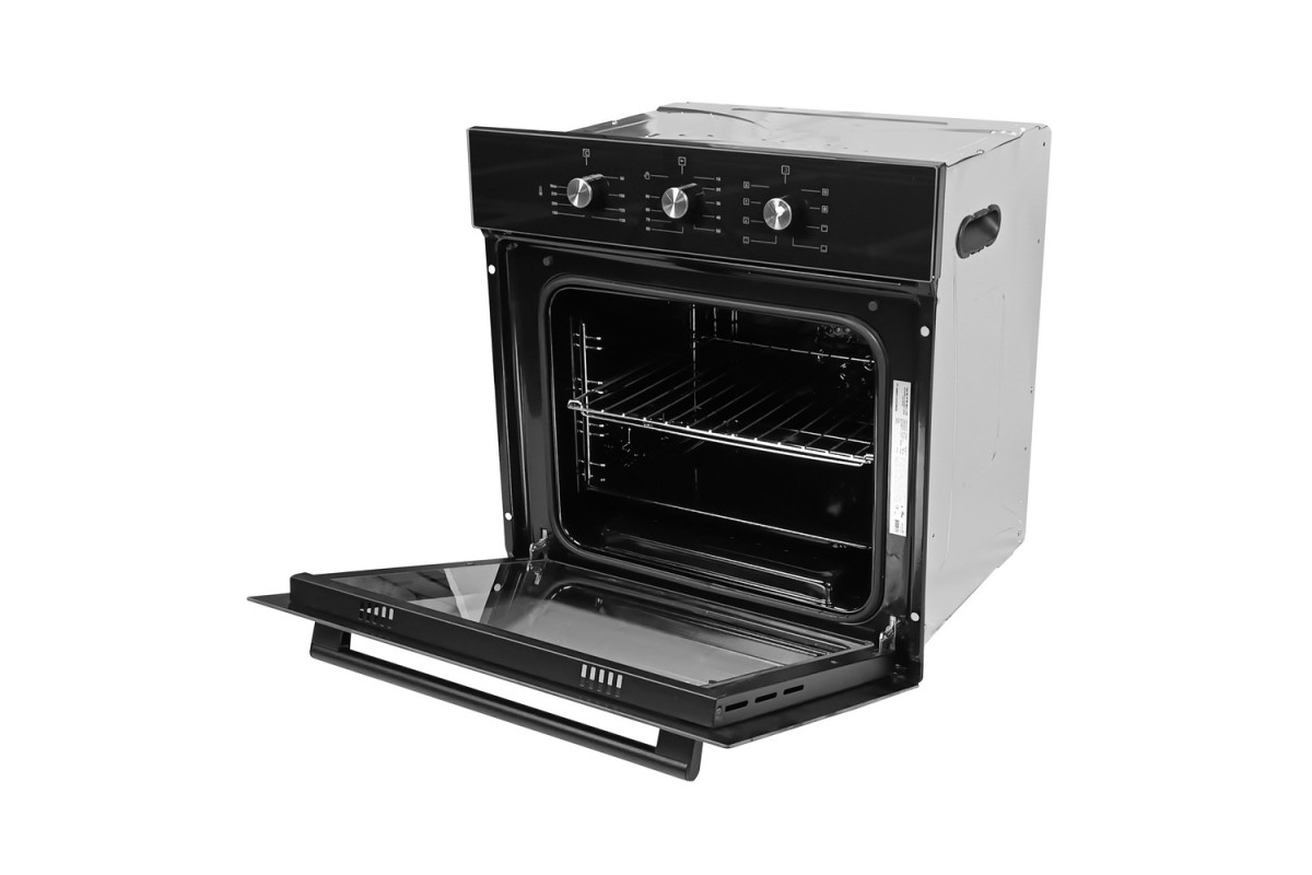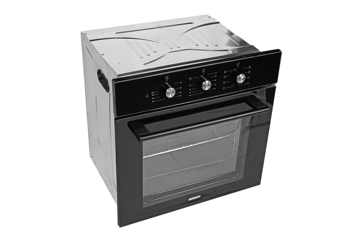 Ручки поворотні із алюмінію. Об'єм духової шафи 57 л розігрівається до максимальної температури 250°С. Ручка духовки виготовлена з алюмінію, що важливо для більшості користувачів.