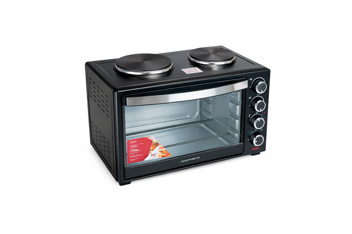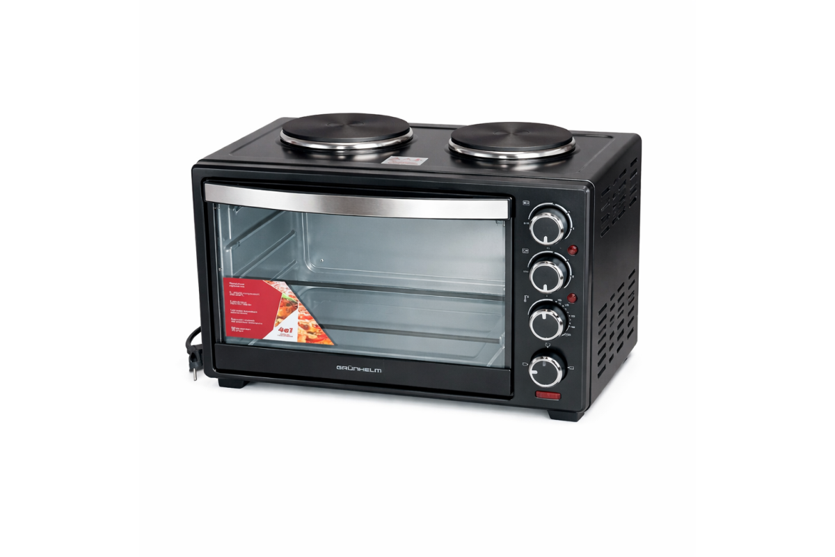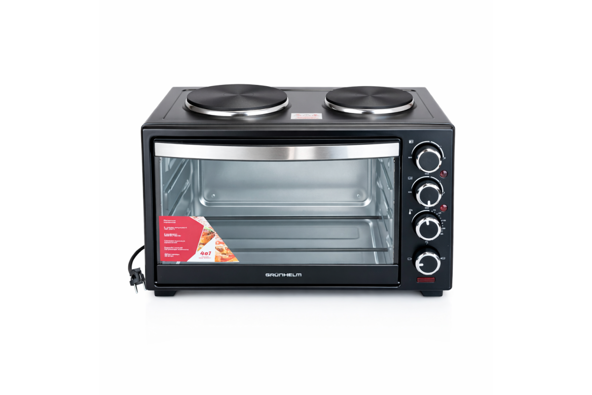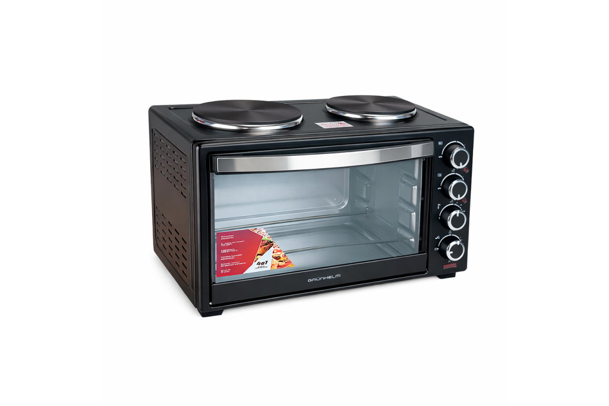 Електрична піч Grunhelm GNM33RHP – зручна та практична модель, яка стане незамінним помічником на Вашій кухні. Піч може працювати в режимі конфоркової плити, печі, грилю або запікання. Оснащена камерою об'ємом 33 л. Управляти піччю легко за допомогою механічного регулятора, є 4 рівні потужності. Для додаткової зручності передбачено таймер на 60 хвилин.