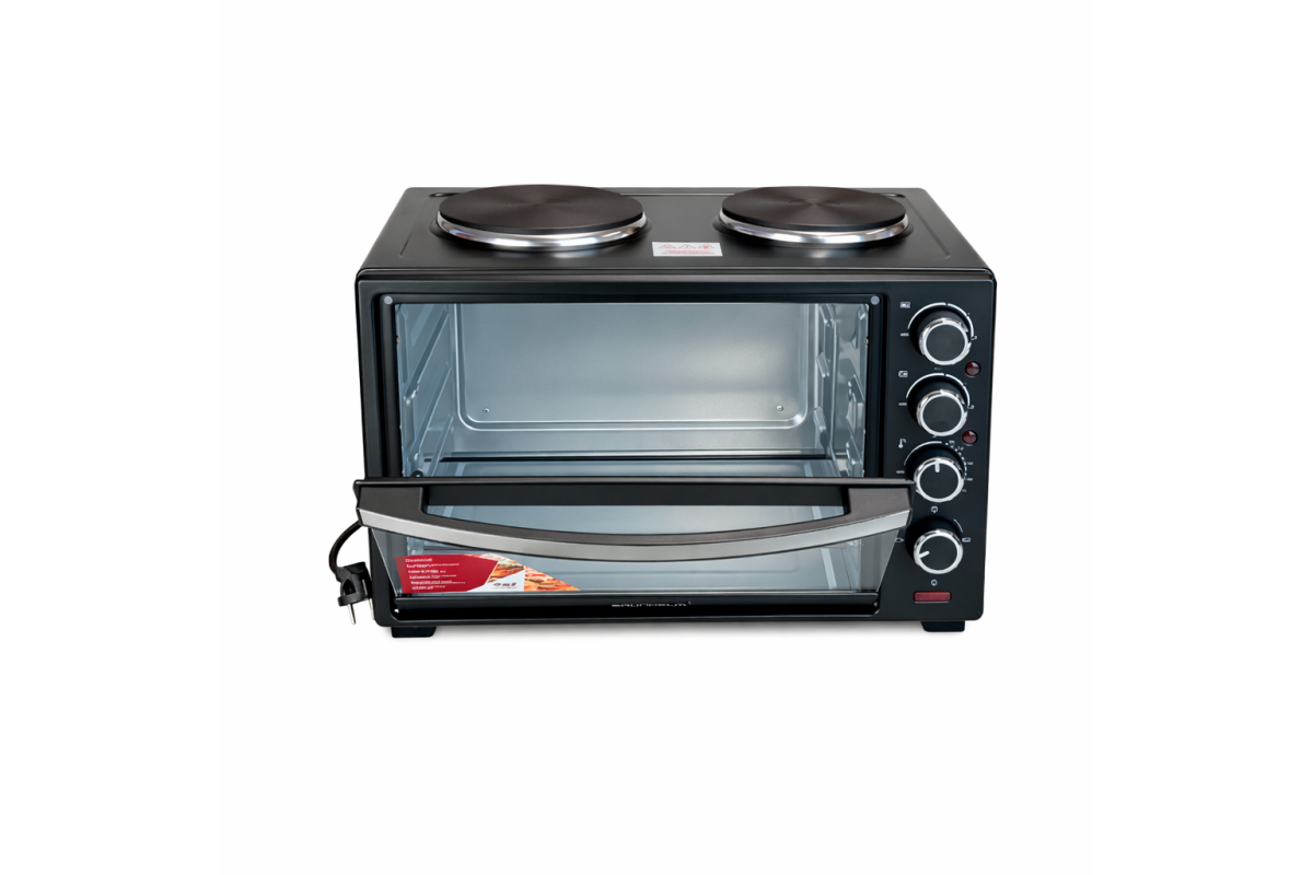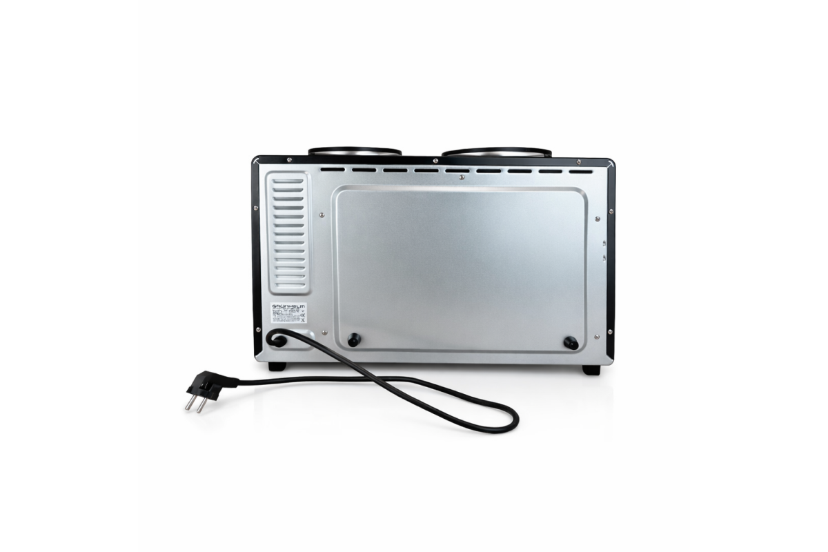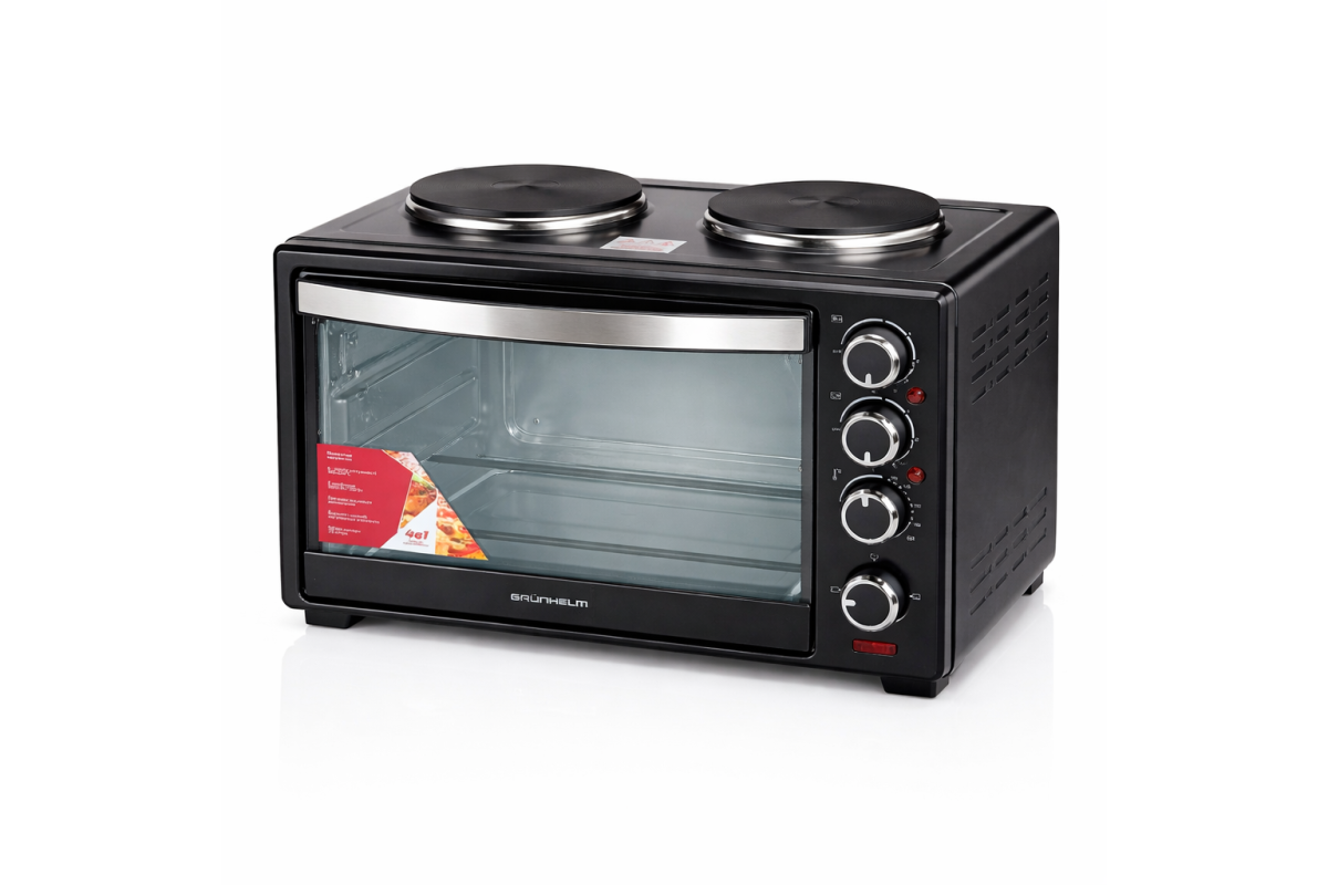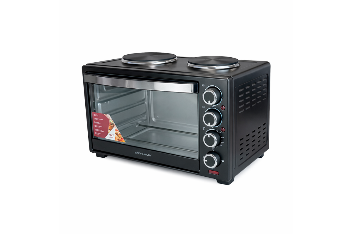 Електрична піч Grunhelm GNM33RHP – зручна та практична модель, яка стане незамінним помічником на Вашій кухні. Піч може працювати в режимі конфоркової плити, печі, грилю або запікання. Оснащена камерою об'ємом 33 л. Управляти піччю легко за допомогою механічного регулятора, є 4 рівні потужності. Для додаткової зручності передбачено таймер на 60 хвилин.