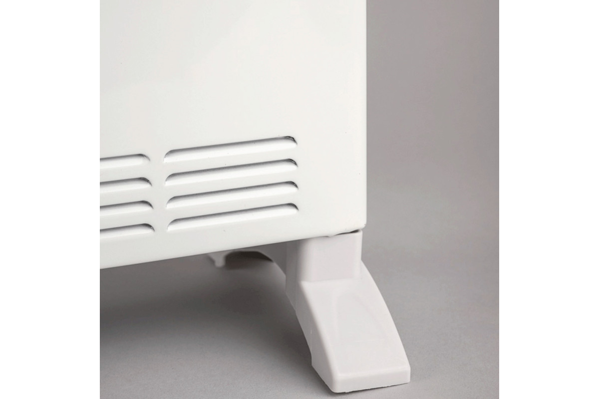 Механічний термостат дозволить автоматично підтримувати необхідну температуру, яку виставляє користувач. Також радує наявність функції захисту приміщення від заморожування. Наявність ніжок і зручні ручки з боків конвектора дозволять Вам легко його переносити і встановлювати в будь-якому місці, на підлозі або на стіні.
