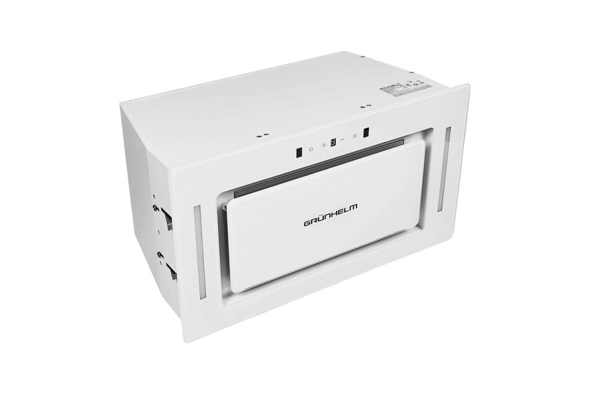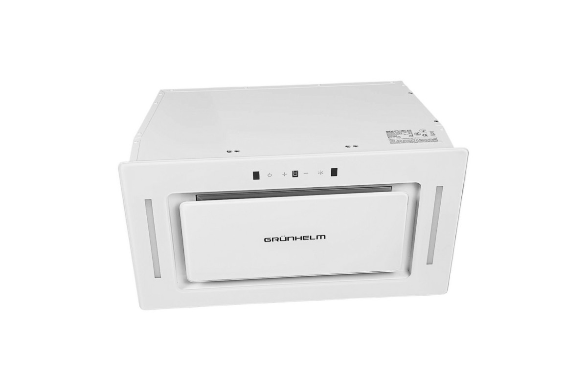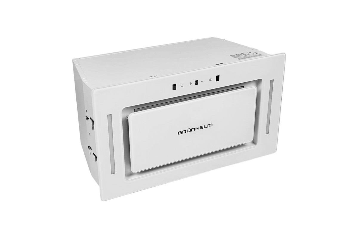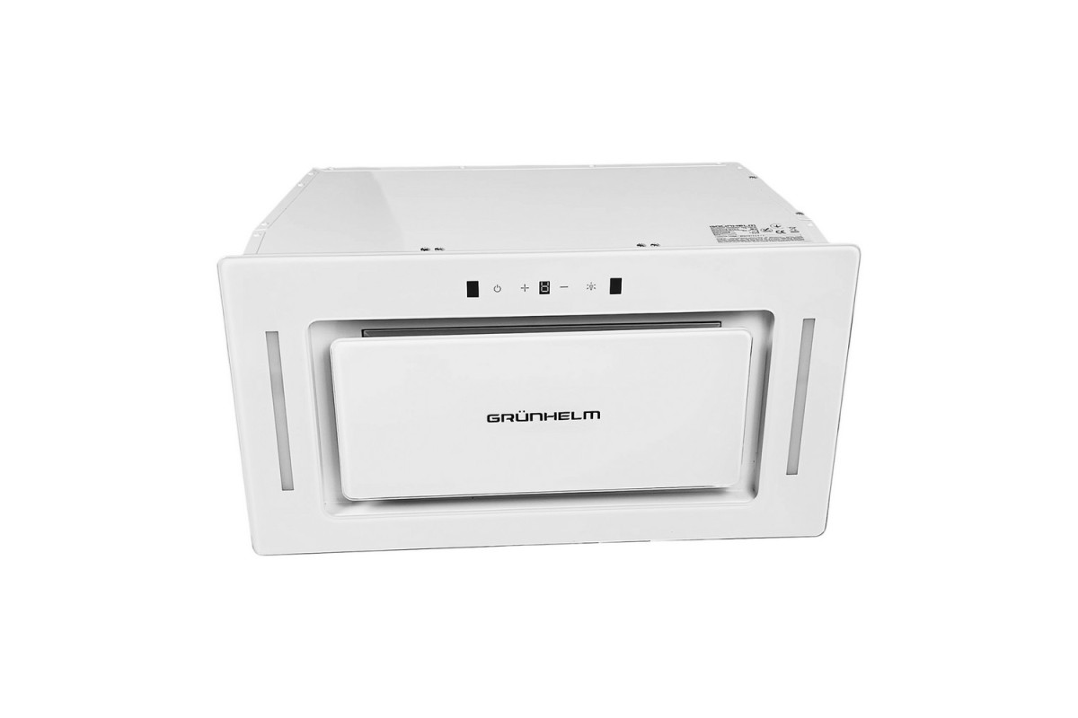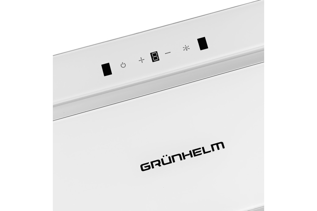 ВбудованаВитяжка GRUNHELM GVN 330 W вбудовується по своєму типу і успішно відводить повітря з поміщеного. Управляється сенсорним жорстким управлінням. Металічний корпус забезпечує тривалий термін служби. Установлен качественный жировий фильтр з алюмінію. Підвіска являє собою дві лампи LED на 1,5 Вт. Орієнтуватися по функціїм зручно завдяки дисплею. Довольно потужний двигун 190 Вт виробляє 950 м³/ч, що є хорошим показником. Три швидкості допоможуть вибрати оптимальний варіант очищення. Витяжка малошумная і економічна.