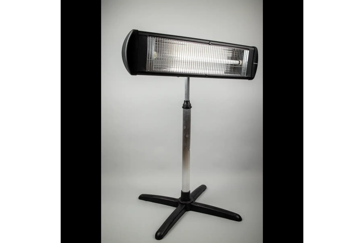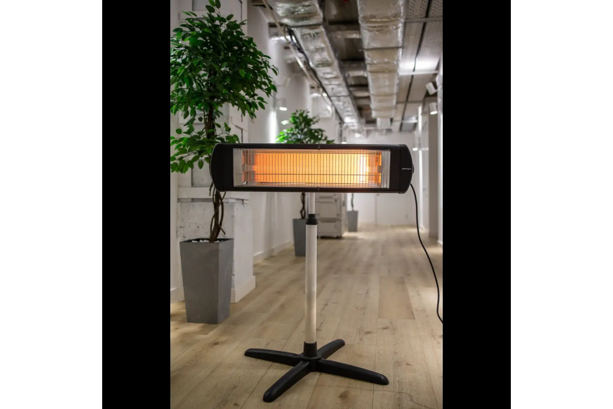 Обігрівач Grunhelm GI-2300S випускається у підлоговому варіанті та розрахований на використання у приміщеннях площею до 18 м². Прилад закріплений на стійку, що регулюється по висоті, яка встановлена на надійну і міцну хрестоподібну підставку. Джерелом тепла є кварцовий нагрівальний елемент потужністю 2,3 кВт. Бажана температура нагрівання визначається поворотним регулятором, розташованим на бічній панелі, і підтримується вбудованим термостатом. Тепло передається інфрачервоним випромінюванням, яке нагріває предмети, на яке воно потрапляє, а не повітря. Така особливість дозволяє виконувати обігрів у приміщеннях із сильним рухом повітря або на відкритому майданчику.
