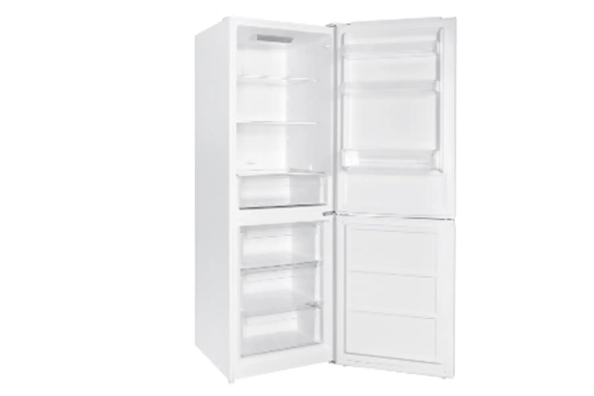 На дверях розміщено 3 пластикові полиці. Ручки інтегровані у холодильник. Енергоспоживання класу A+, кліматичний клас SN, N, ST.