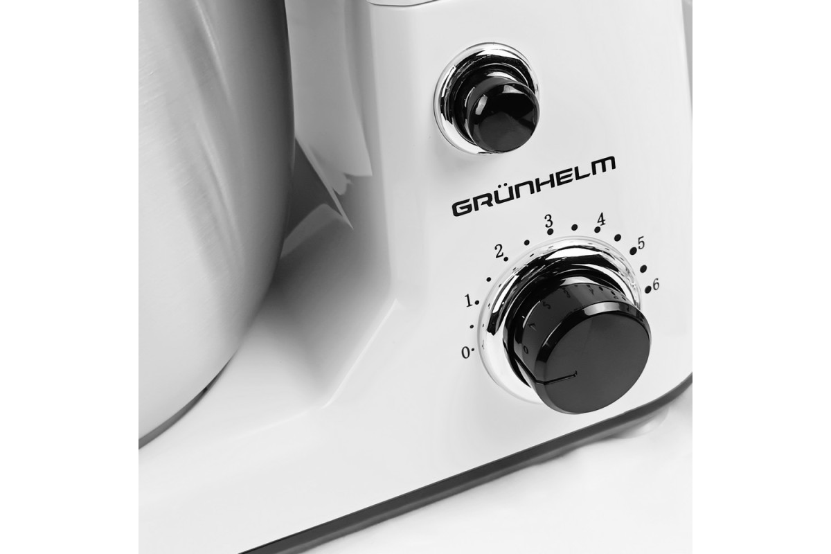 3.52Кухонний комбайн GKM0010 Grunhelm - стане незамінним помічником на Вашій кухні. Знімна чаша об'ємом 4 л виготовлена з нержавіючої сталі. Для зручного використання передбачено 6 швидкостей, які регулюються за допомогою ручки.