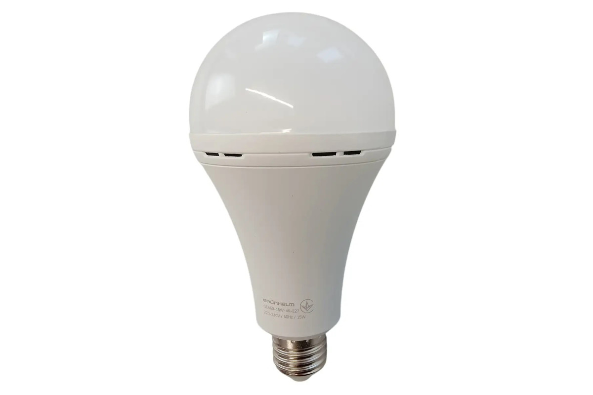 Лампа LED аварійна - GEA60-15W-4K-E27 Grunhelm заощадить від 900 кВт/год. за весь строк служби лампи. Не містить ртуті, безпечна для дітей і дорослих.