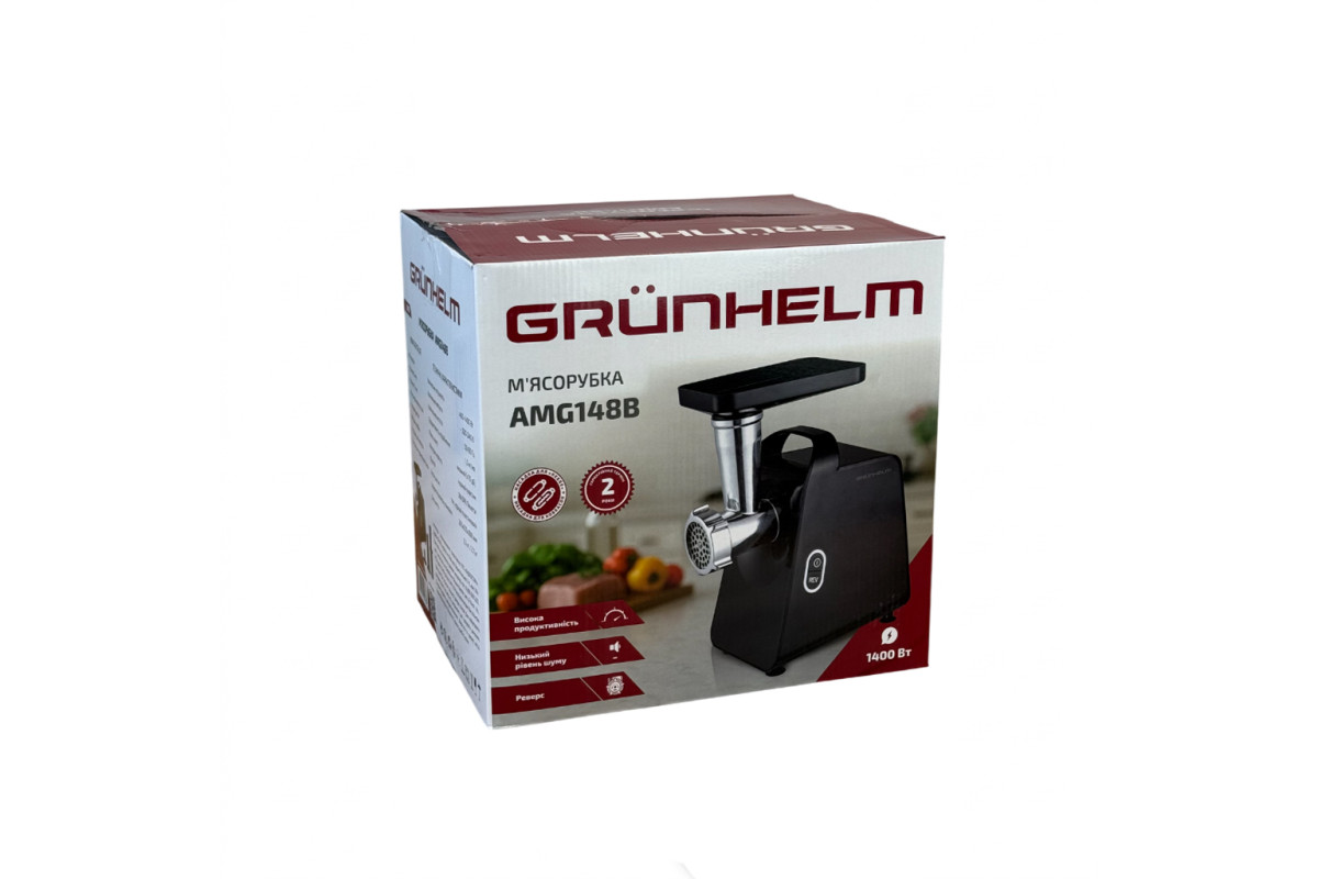 М'ясорубка електрична GRUNHELM AMG148B, 1400 Вт. 2 решітки, насадка для ковбас і кеббе, реверс. Корисна річ для кожної господині, стане в нагоді в побуті