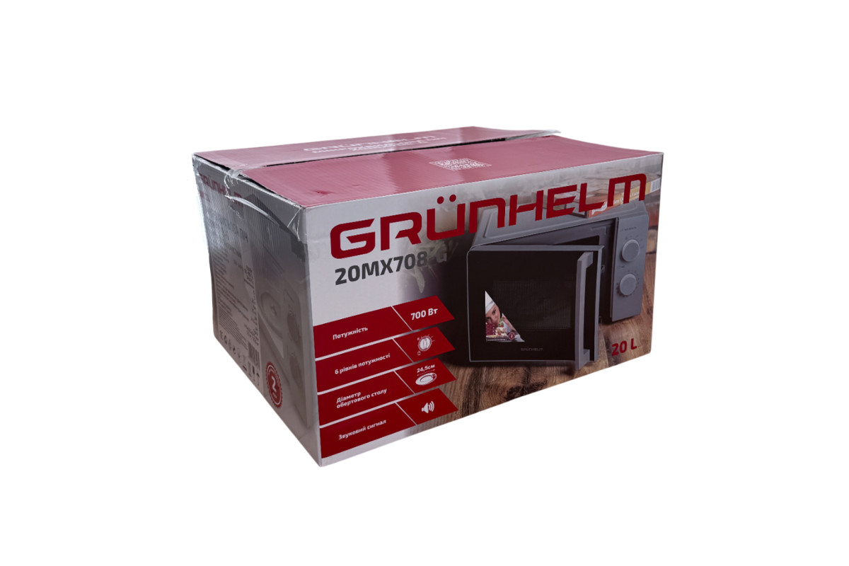 Окремостояча Мікрохвильова піч GRUNHELM 20MX708-G (сіра) 20л, 700 Вт, механічна , стане незамінною помічницею на кожній кухні. Це один з найбільш функціональних та зручних технічних пристроїв для кухні, призначений для швидкого приготування або швидкого підігріву їжі, розморожування продуктів.