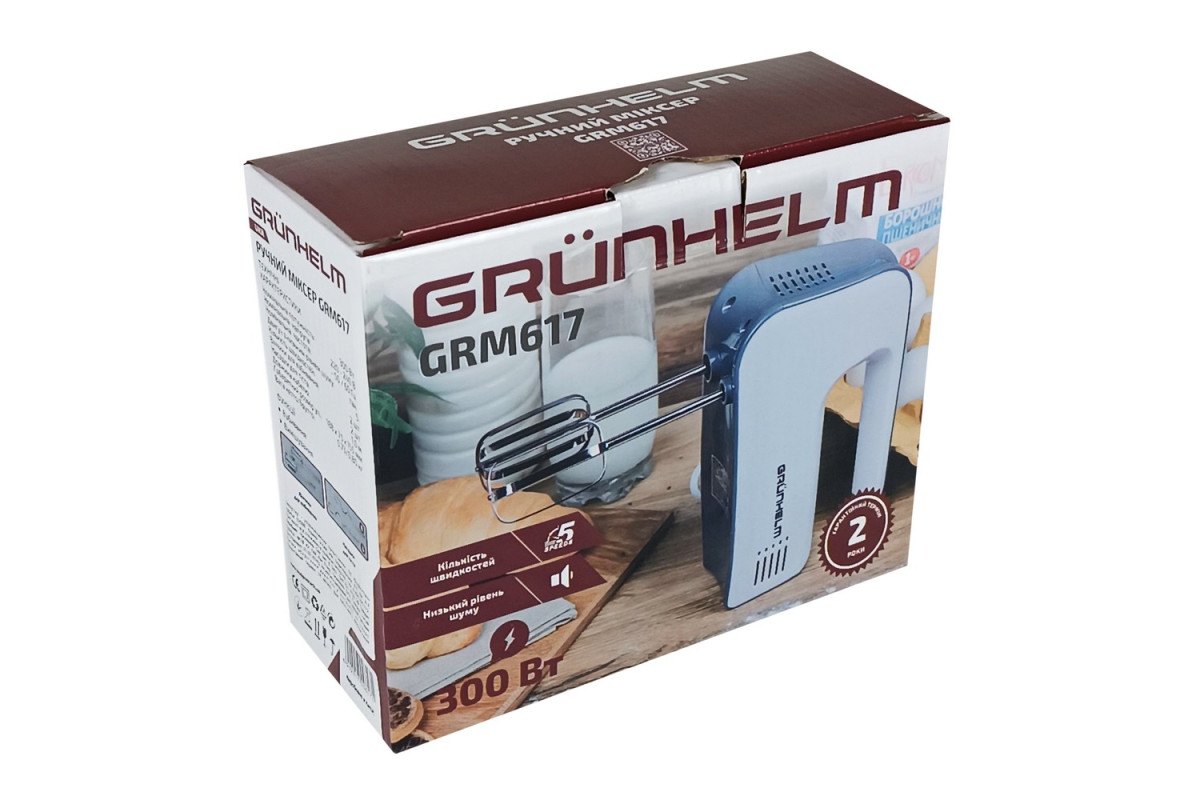 0.8МІКСЕР GRM617 300 Вт, вінчики 2шт, гачки 2шт GRUNHELM