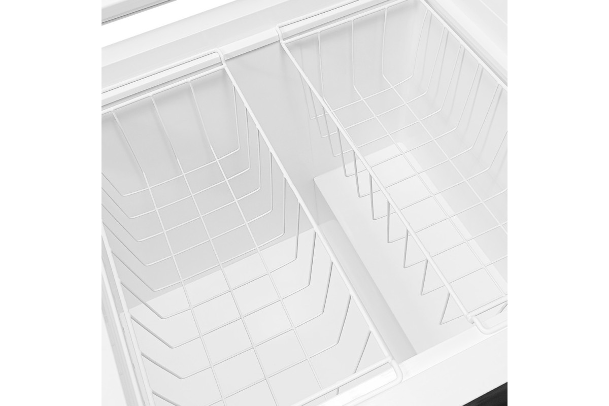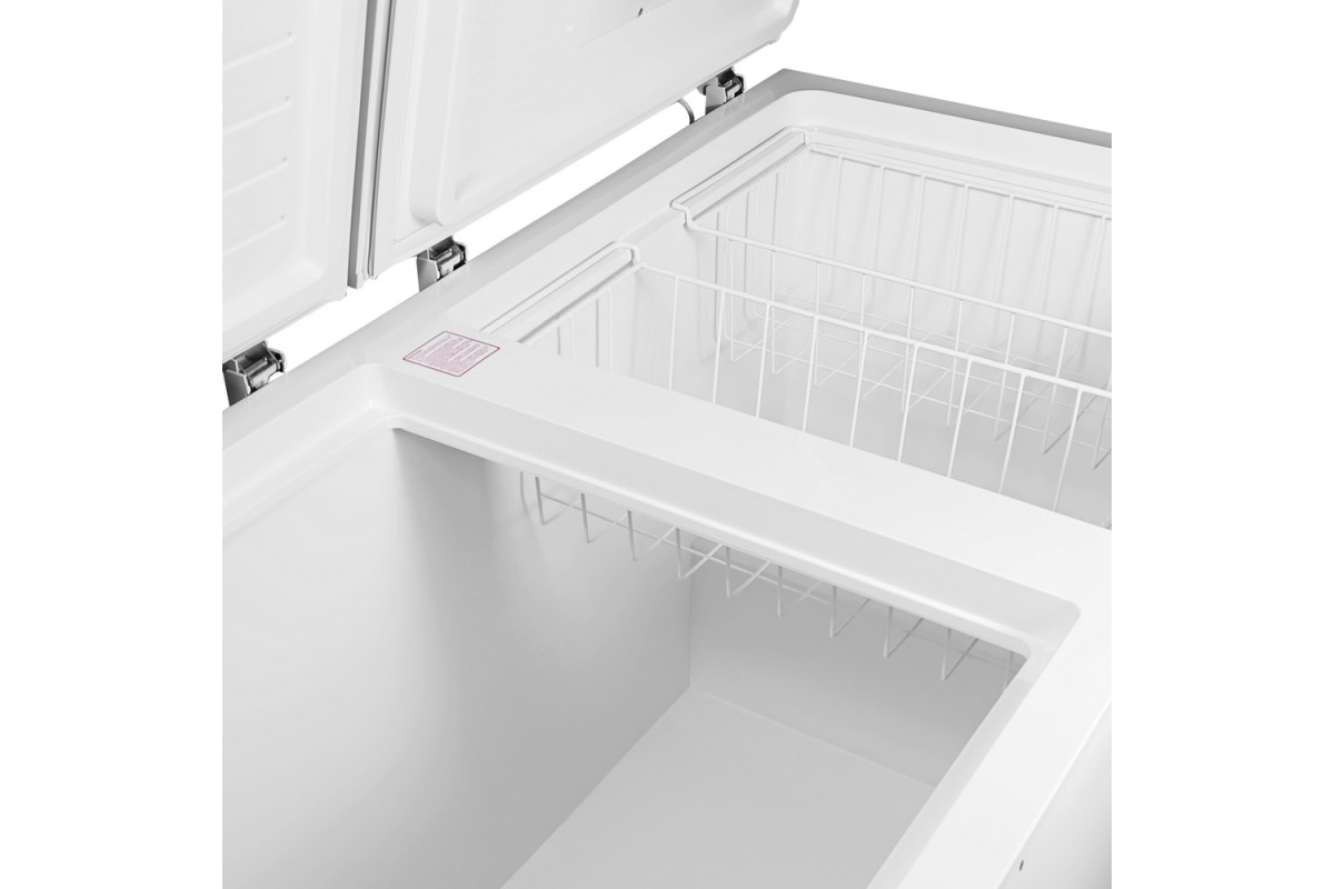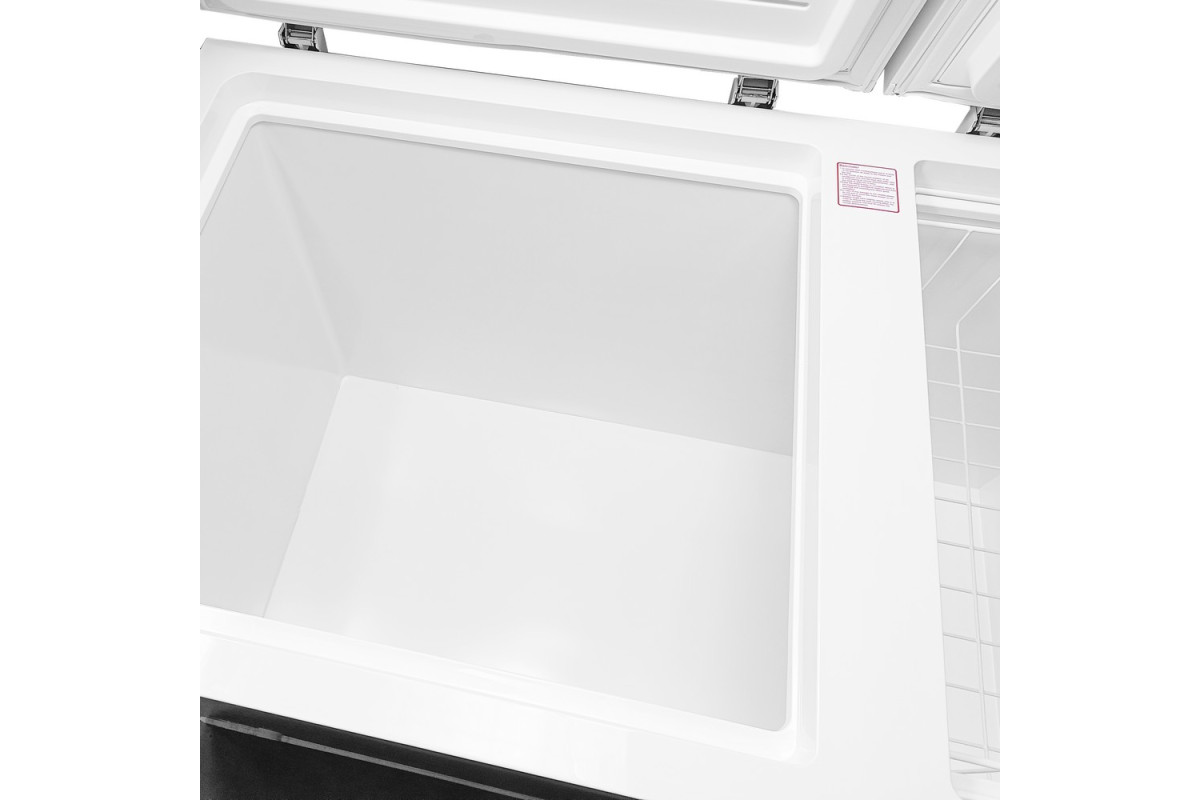 Морозильну скриню CFM-500 GRUNHELM - часто використовують як у підприємницькій діяльності: магазини, кафе, ресторани, так і в побутовій, для зберігання їжі. Вона з легкістю заморозить м'ясо, птицю, рибу і різні овочі, фрукти і ягоди. Вона також ідеально підійде для охолодження напоїв. Ця модель має дві верхні дверці.