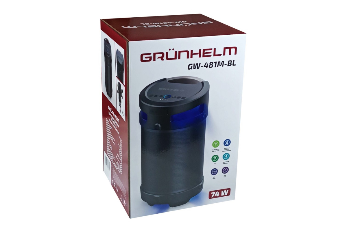 Портативна колонка 4.1 GW-481M-BL Grunhelm - оснащена акумулятором ємністю 4400 mAh, який забезпечує до 3 годин безперервної роботи. Потужність колонки становить 74 Вт, що дозволяє отримати якісний звук.