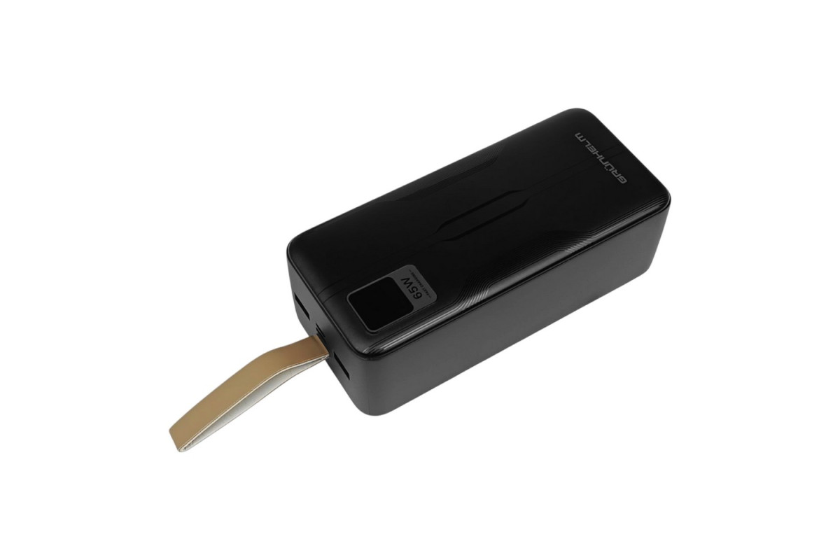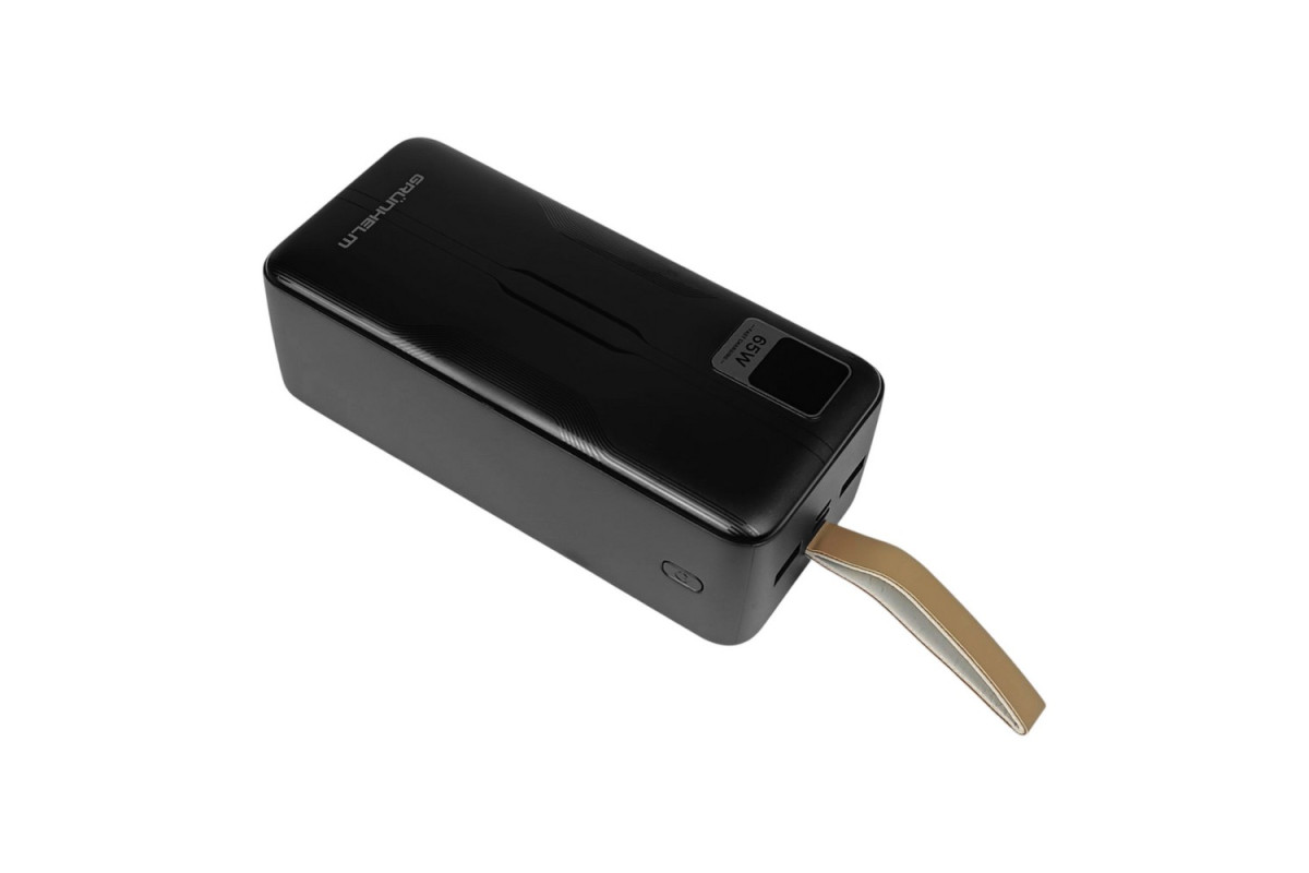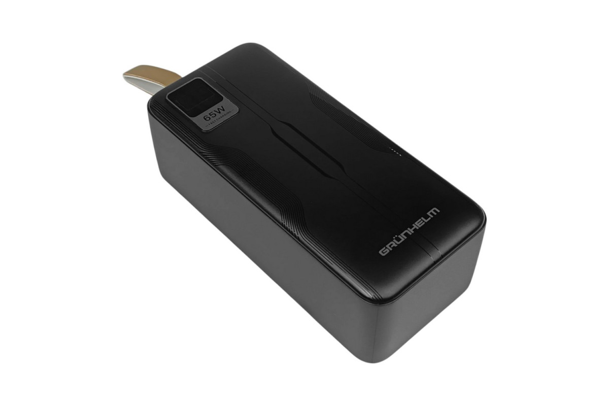 Li-полімернаPower Bank Портативна батарея 40.000 mAh, для ноутбуків, чорний - GP-40BLT Grunhelm — має вихідну потужність 65 Вт, що є достатнім для деяких ноутбуків з підтримкою зарядки через TYPE-C. Пристрій оснащений захистом від короткого замикання, швидкою зарядкою та цифровим дисплеєм.