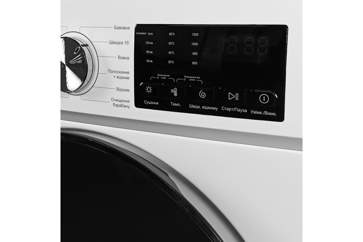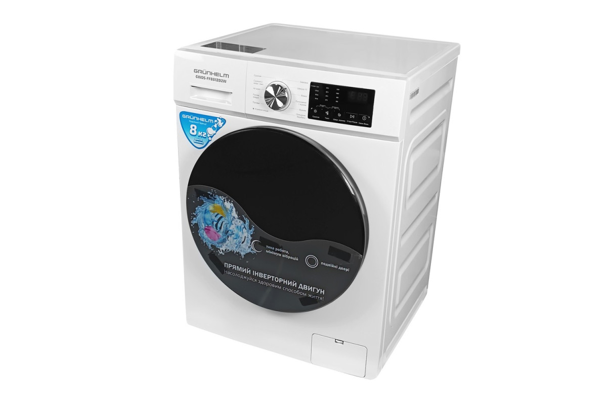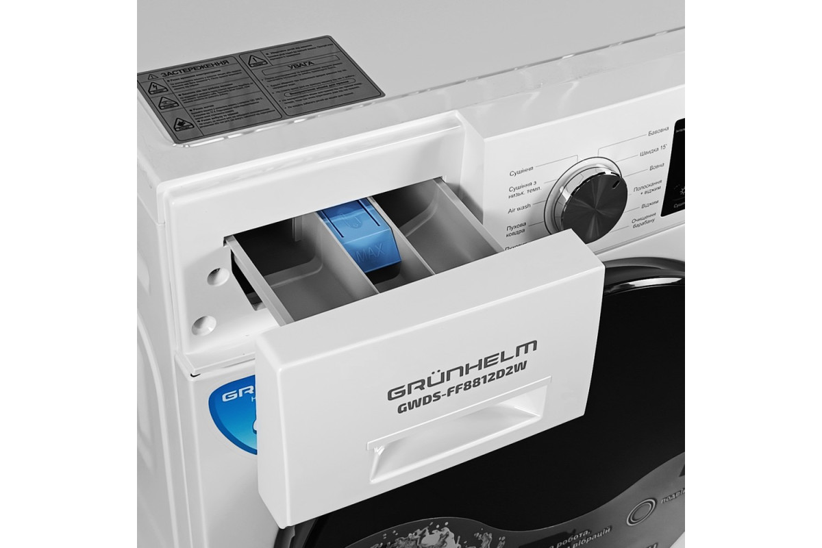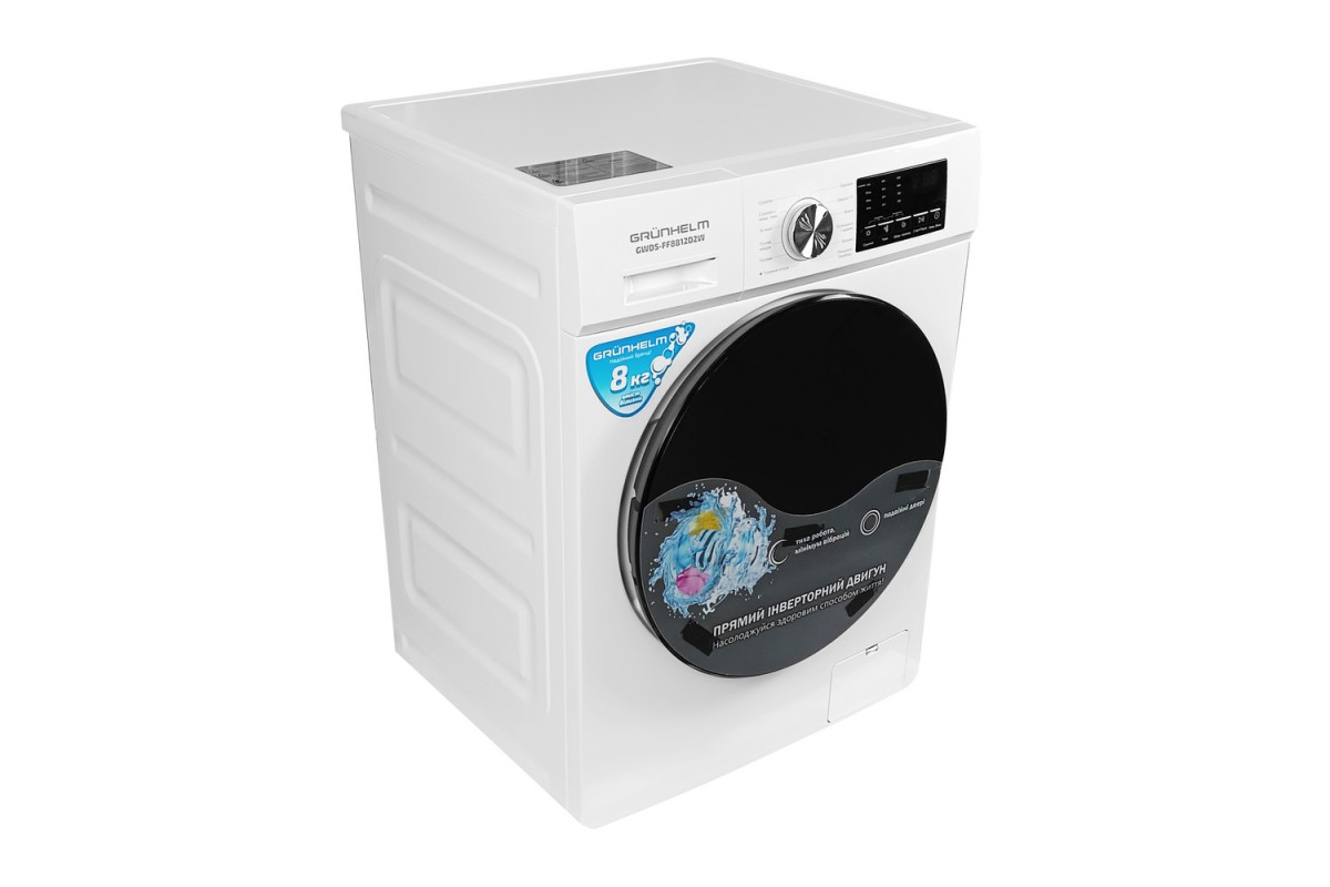 ФронтальнаПрально-сушильна машина авт.GWDS-FF8812D2W (біла,1200 об, 8 кг прання, 8 кг сушка) Grunhelm