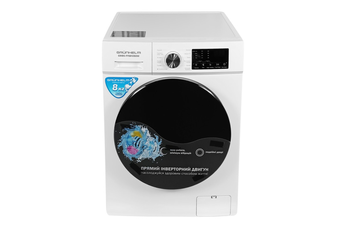 Прально-сушильна машина GWDT-FF10614D2W Grunhelm фронтально завантажується до 8 кг для прання і 8 кг сушка.