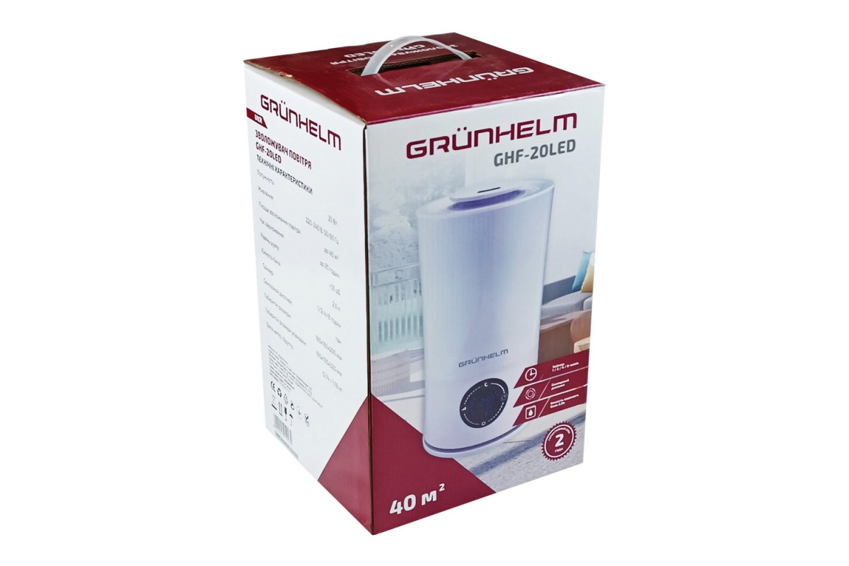 Увлажнитель воздуха – GHF-20LED GRUNHELM – ультразвуковой увлажнитель позволит поддерживать здоровую атмосферу и уют в вашем доме. Выполненный в компактном корпусе размерами 165x165x290 мм, он не займет много места в помещении и при этом будет эффективен на площади до 35 м2.