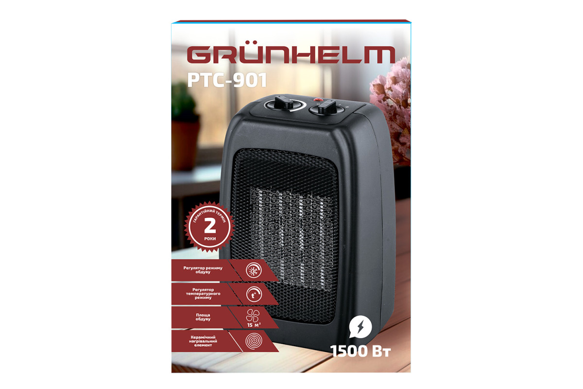 Тепловентилятор керамический – PTC-901 (регулируемая мощность до 1500Вт, 220В) Grunhelm