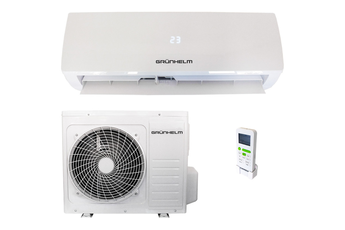 Настенный кондиционер компании Grunhelm – это мощный в своей бюджетной категории агрегат. Осуществляет охлаждение, обогрев, вентилятор, авто-осушение воздуха. Хладогент R32 – химическая формула CH2F2. Низкий уровень шума. Экономический режим. Независимая осушка. Таймер 24 часа.