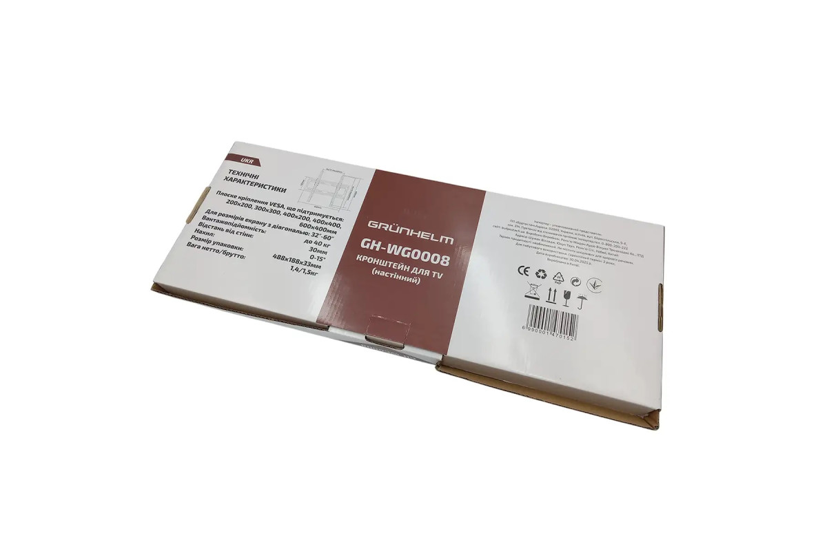 1.4 кгКронштейн для ТВ GH-WG0008 Grunhelm – надежный и универсальный кронштейн станет идеальным решением для настенного крепления вашего телевизора. Он разработан для LCD/LED телевизоров с диагональю от 32 до 60 дюймов и способен выдержать вес до 40 кг , что гарантирует максимальную безопасность вашей техники.