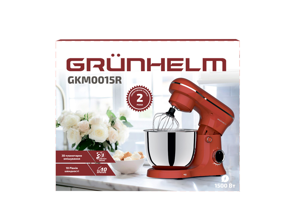 2.9 кгКухонная машина Grunhelm GKM0015R совмещает в себе качество и стильный дизайн. Она крепкая, универсальная, имеет небольшой вес и удобна в использовании.