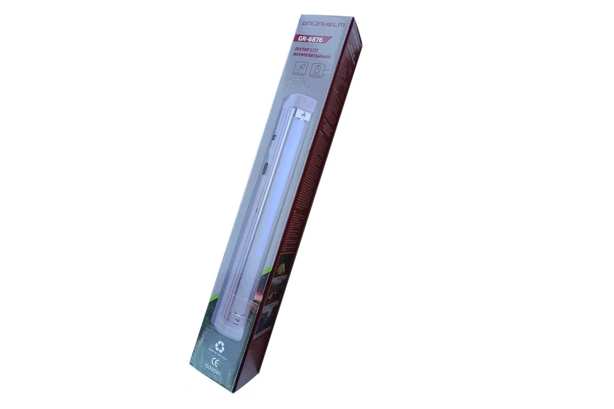 6 летЛампа LED акум – GR-6876 GRUNHELM – универсальный портативный светодиодный фонарь, простой в установке, применяется как для ежедневного использования, так и для резервного освещения, а также для аварийных случаев отключения электричества. Лампа имеет встроенную аккумуляторную батарею емкостью 1200мАч. Применение надежных SMD LED светодиодов позволяет обеспечить длительный срок службы лампы. Лампу универсальную в использовании, ее можно поставить на горизонтальную поверхность с помощью подставки или подвесить с помощью крючка. Если пользуетесь фонарем редко, для долговечности аккумулятора советуем каждые 3 месяца заряжать в течение 4-6 часов, нельзя заряжать аккумулятор более 15 часов.