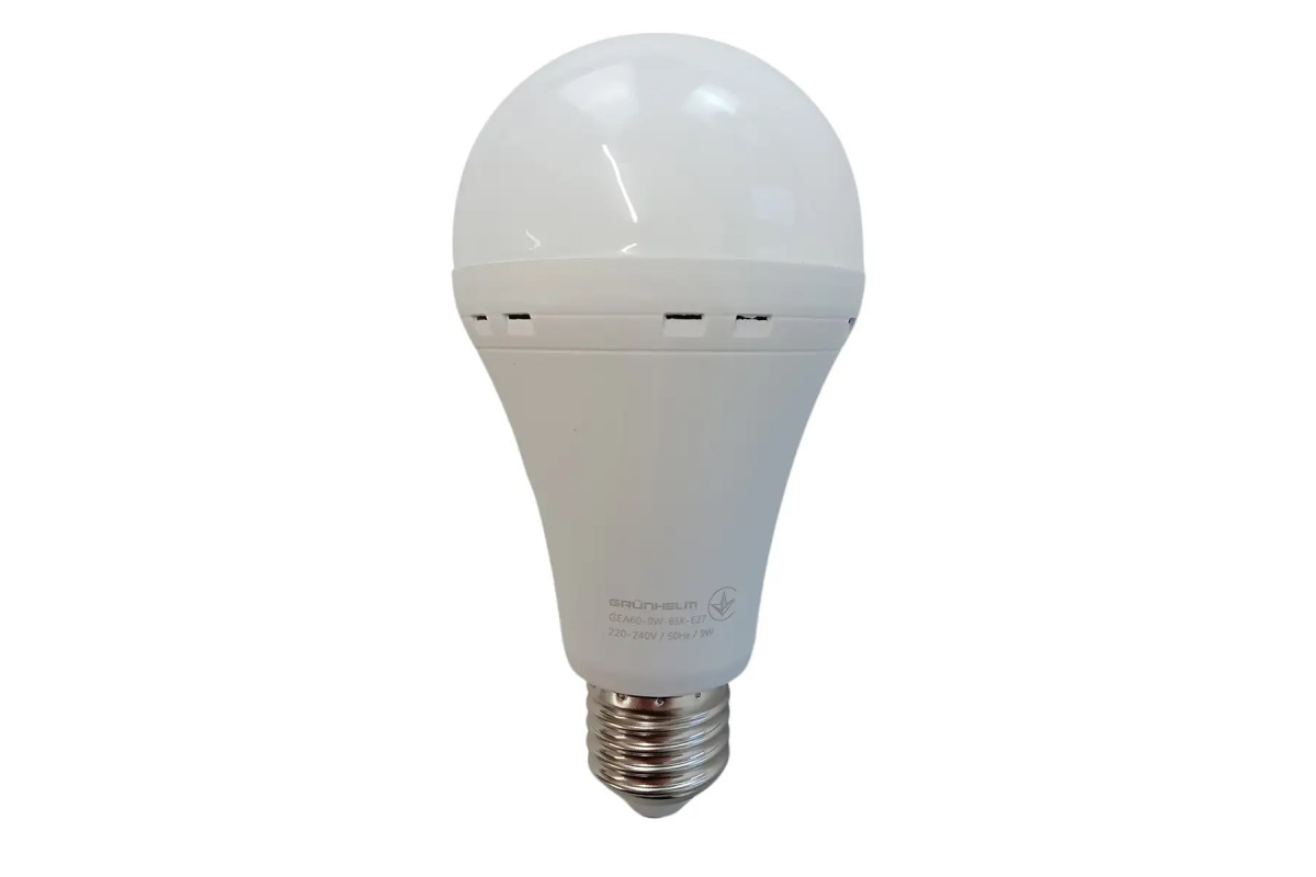 Лампа LED аварийная – GEA60-9W-65K-E27 Grunhelm сэкономит от 900 кВт/ч. за весь срок службы лампы. Не содержит ртути, безопасна для детей и взрослых.