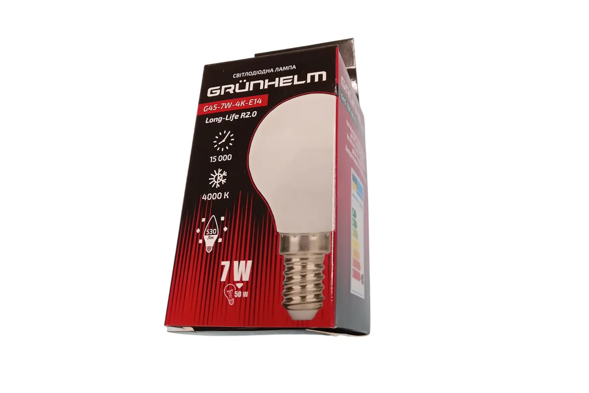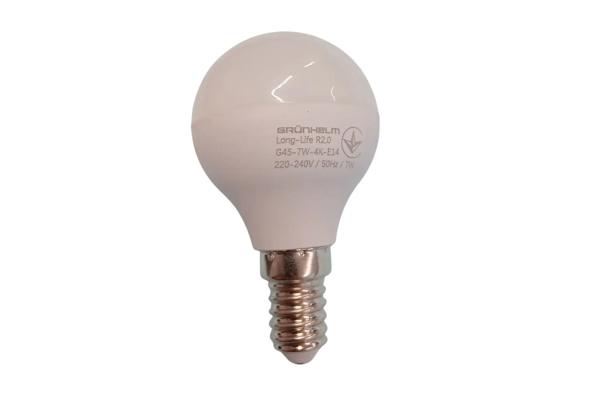 12 месяцевЛампа LED - G45-7W-4K-E14 Long-Life R2.0 Grunhelm сэкономит от 900 кВт/ч. за весь срок службы лампы. Не содержит ртути, безопасна для детей и взрослых.
