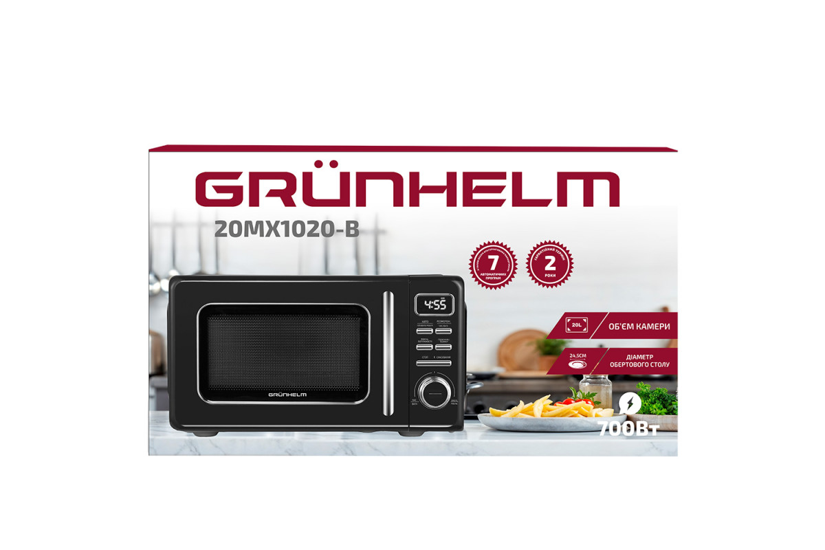 6990001466421Микроволновая печь Grunhelm20MX1020-B мощностью 700 Вт. Модель имеет 11 уровней мощности, благодаря чему можно идеально подогреть продукт в зависимости от ваших потребностей.