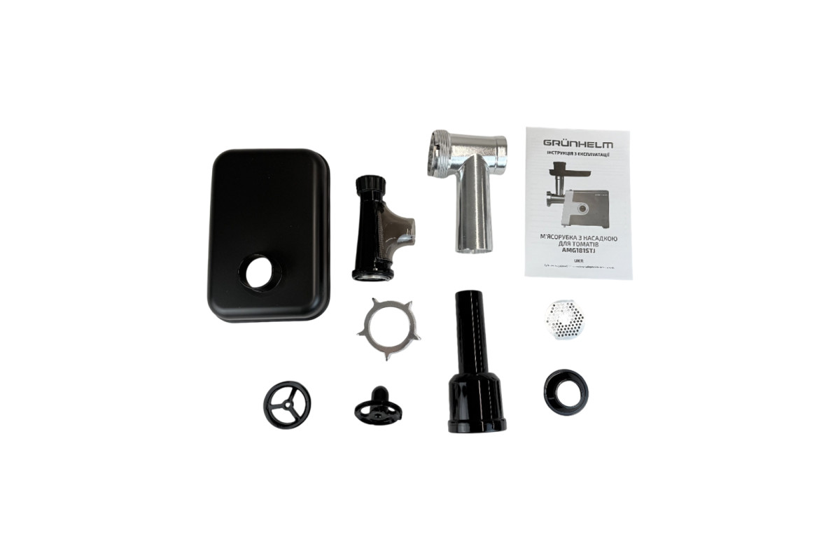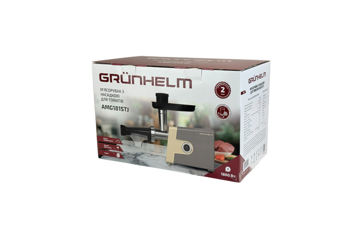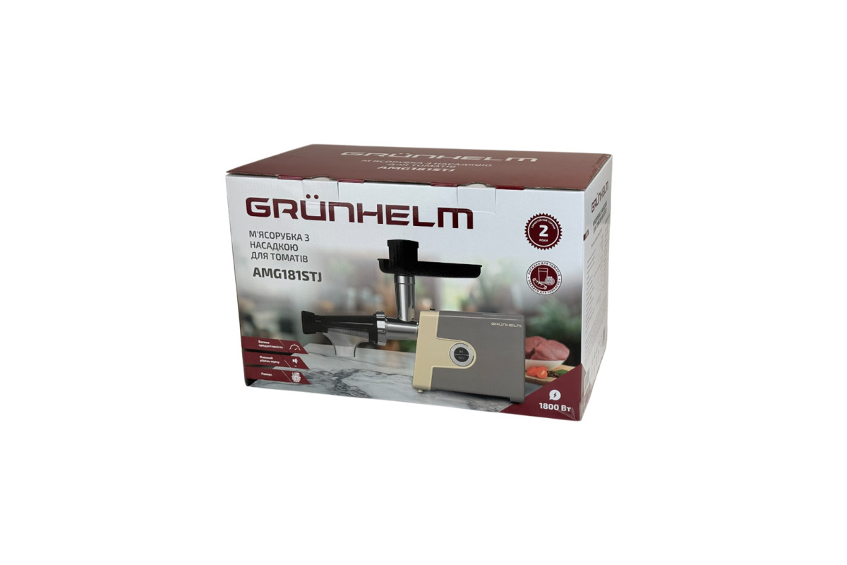 Мясорубка электрическая AMG181STJ 1800 Вт 2 решетки, насадка для колбас и кеббе, реверс Grunhelm