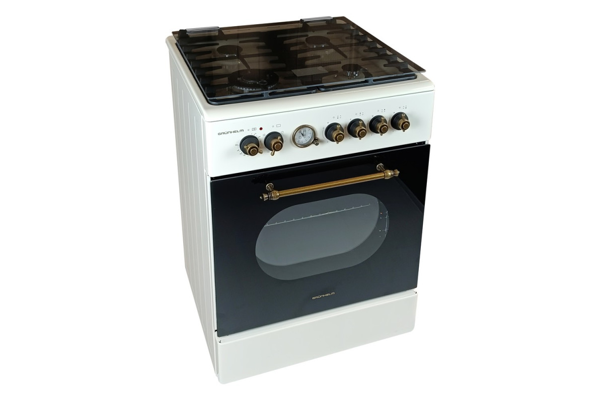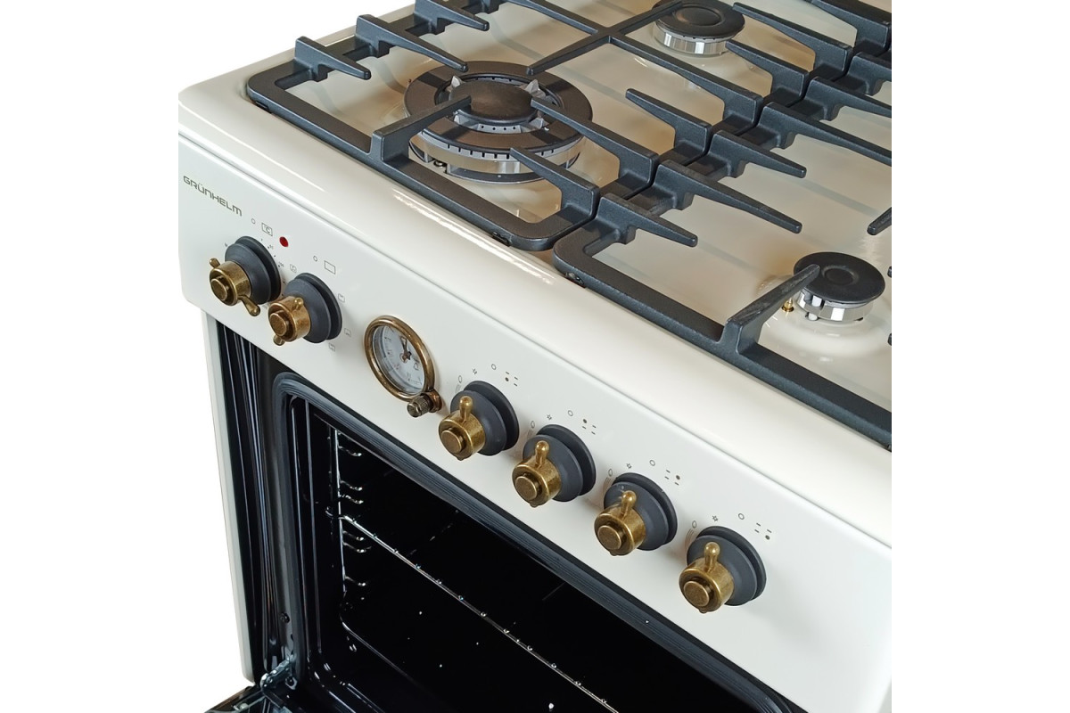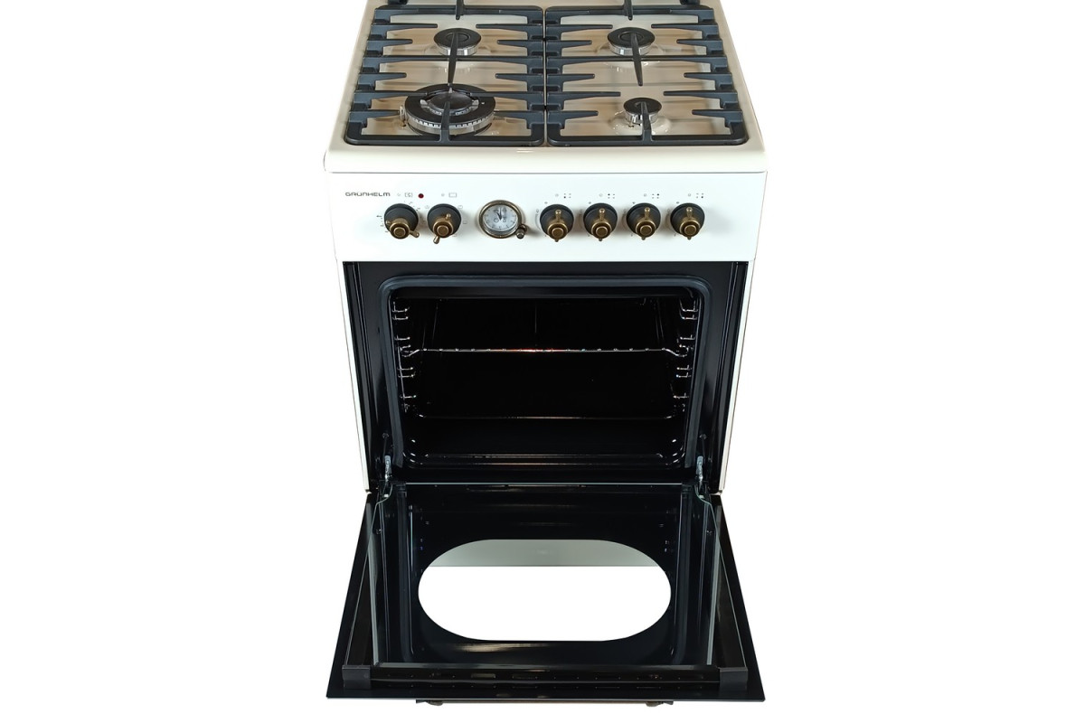 20 мбарПлита газоэлектрическая Grunhelm FDR661234BE Бежева – модель комплектуется функцией газ контроля, поэтому использование этой модели будет максимально безопасным и комфортным. На варочной панели предусмотрены 4 инновационные конфорки разных размеров – для комфортного и равномерного нагрева посуды разных объемов и диаметров днища. Мощность газового потока и пламени регулируют поворотные ручки на передней панели плиты.