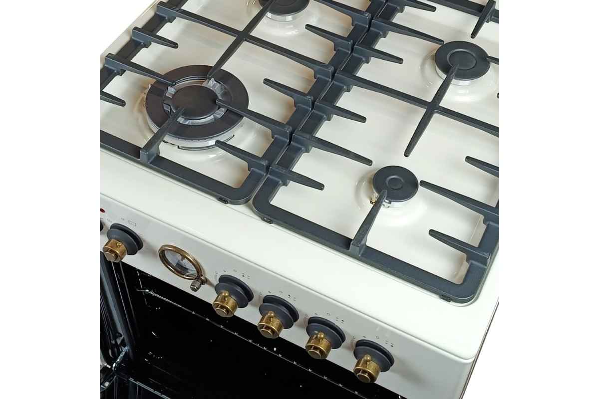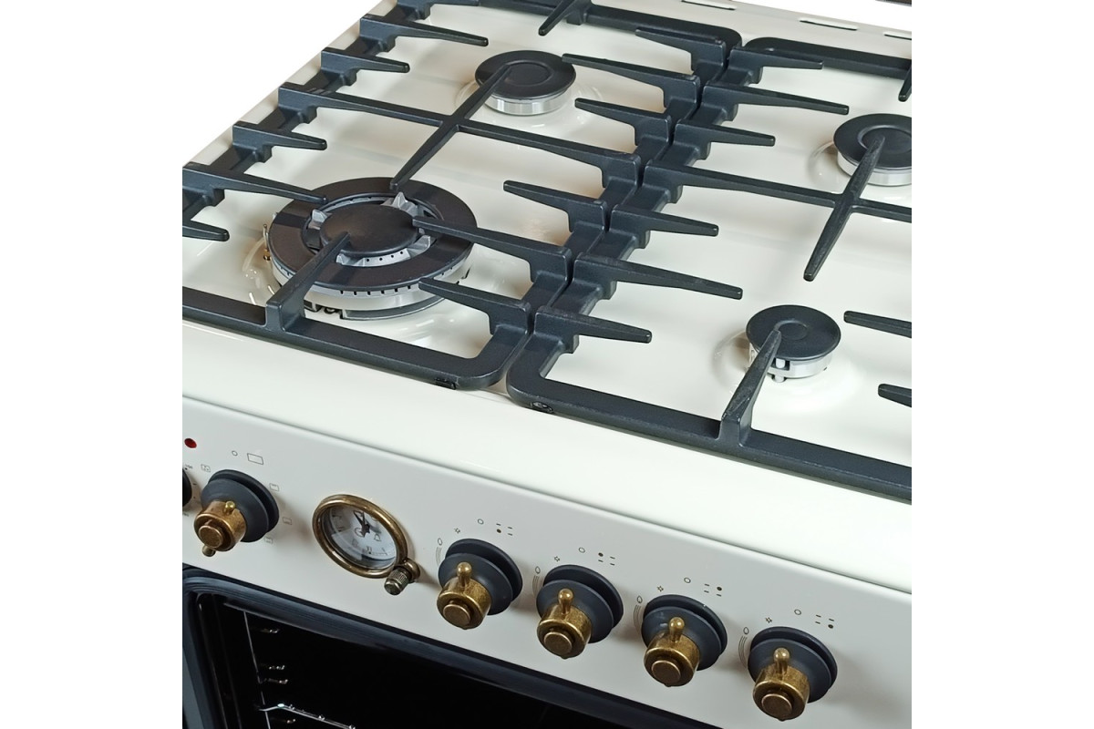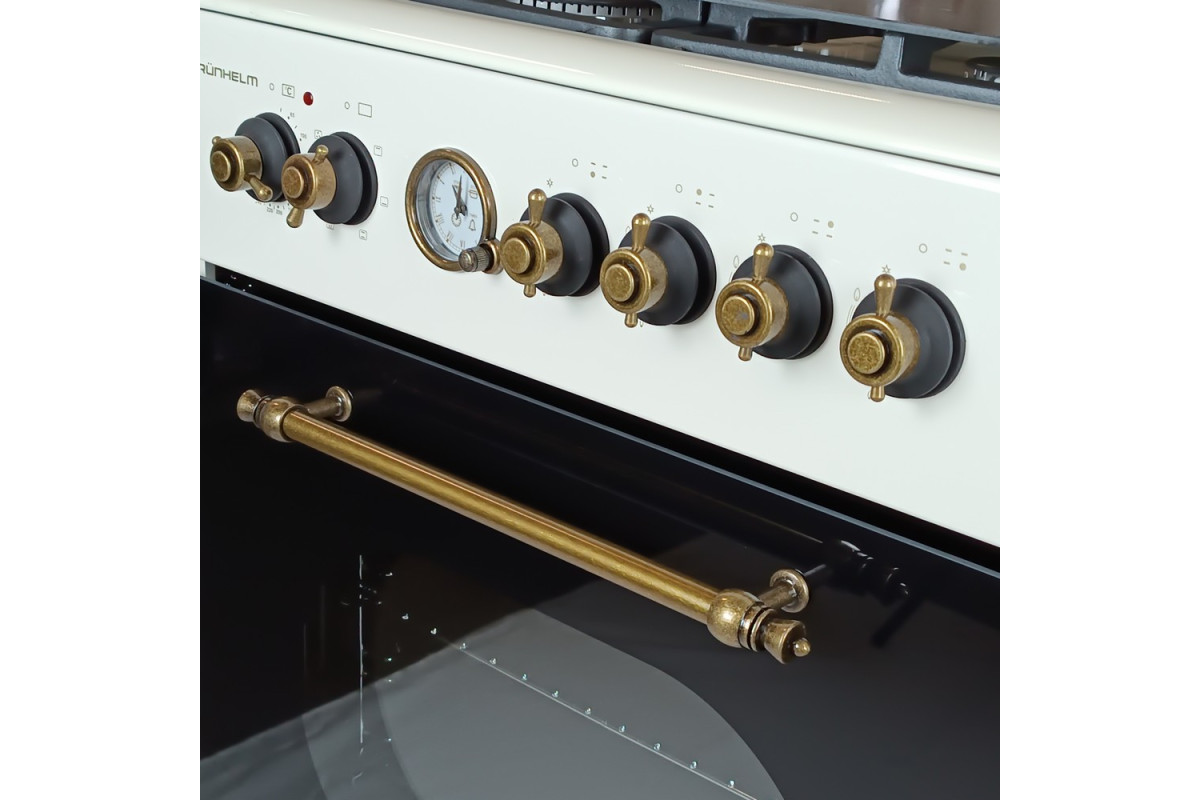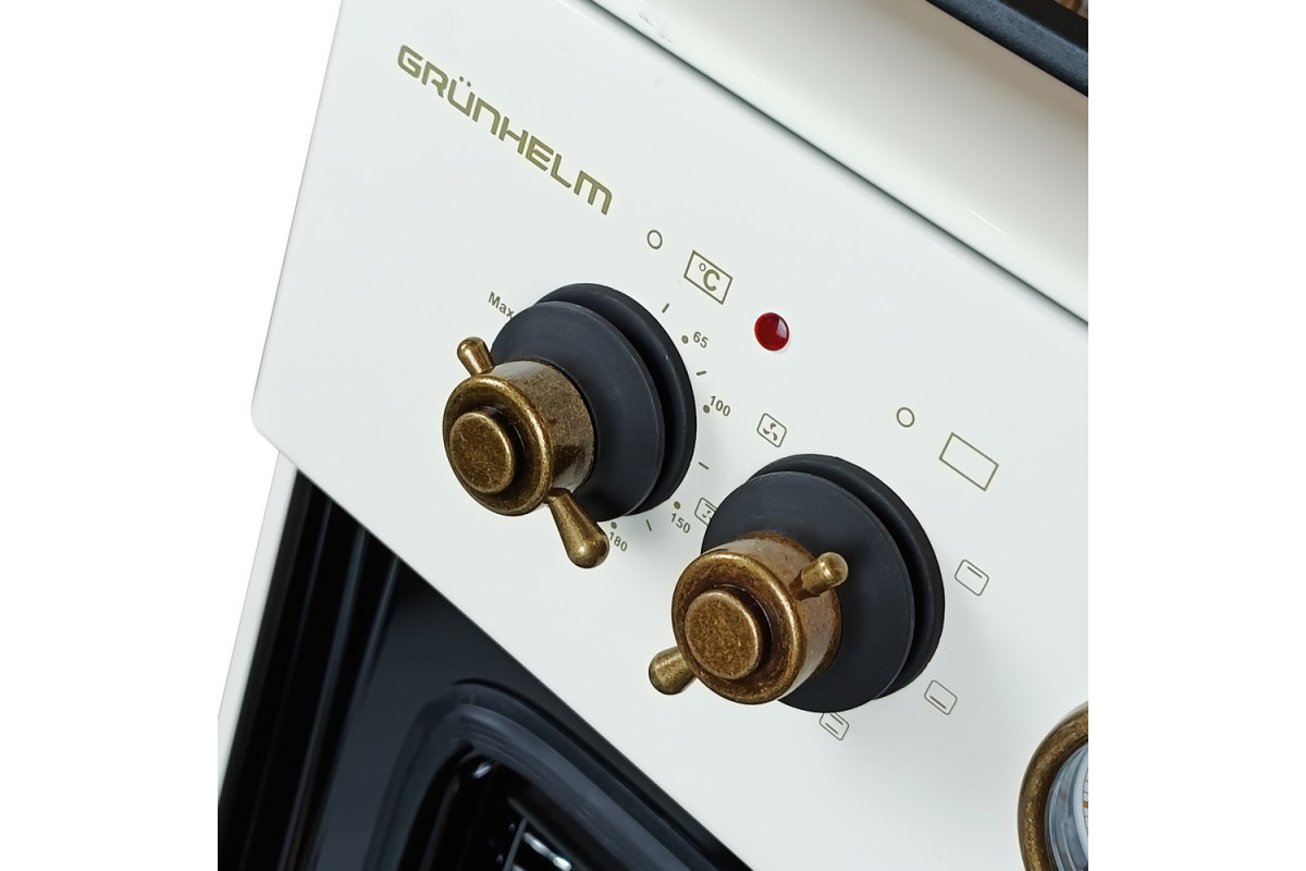 20 мбарПлита газоэлектрическая Grunhelm FDR661234BE Бежева – модель комплектуется функцией газ контроля, поэтому использование этой модели будет максимально безопасным и комфортным. На варочной панели предусмотрены 4 инновационные конфорки разных размеров – для комфортного и равномерного нагрева посуды разных объемов и диаметров днища. Мощность газового потока и пламени регулируют поворотные ручки на передней панели плиты.