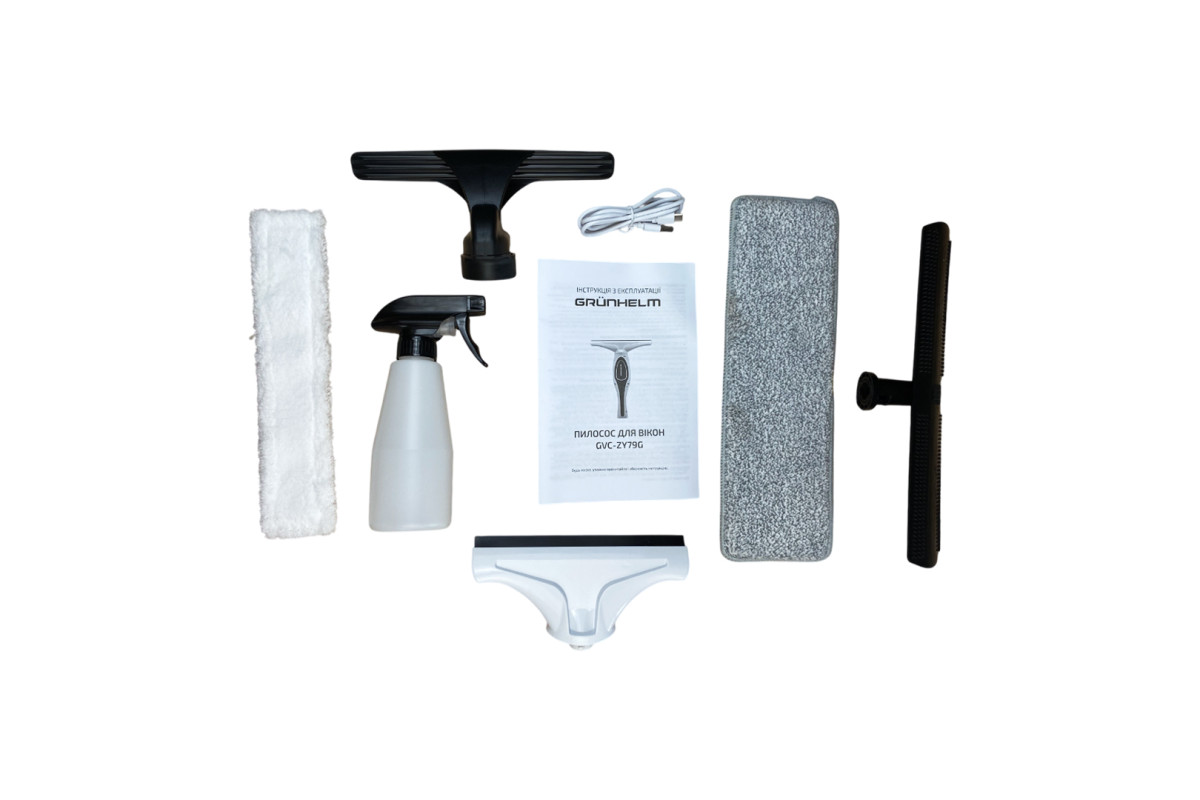Пылесос для окон акум. GVC-ZY79G Grunhelm – незаменимый помощник в Вашем доме для мытья окон на внешней стороне, большой площади и в труднодоступных местах. Оснащен литий-ионный (Li-ion) аккумулятором 2000 мА/ч, работы которого хватает до 30 минут. Это позволяет свободно и беспрепятственно использовать прибор. Мощность всасывания 1.4 кПа. Имеет съемный резервуар для воды.