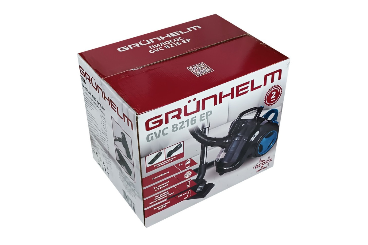 40/80смПылесос конейнерный циклон GVC 8216 EP Grunhelm – контейнерный пылесос изготовлен с использованием технологии «циклон». В нем основой системы фильтрации служит центробежная очистка воздуха. Его потоки, попадая в очиститель, с большой скоростью вращаются снутри, выполняя работу циклона. В результате тяжелые пылевые частицы оседают на фильтрующую пластину и затем удаляются путем вытряхивания.