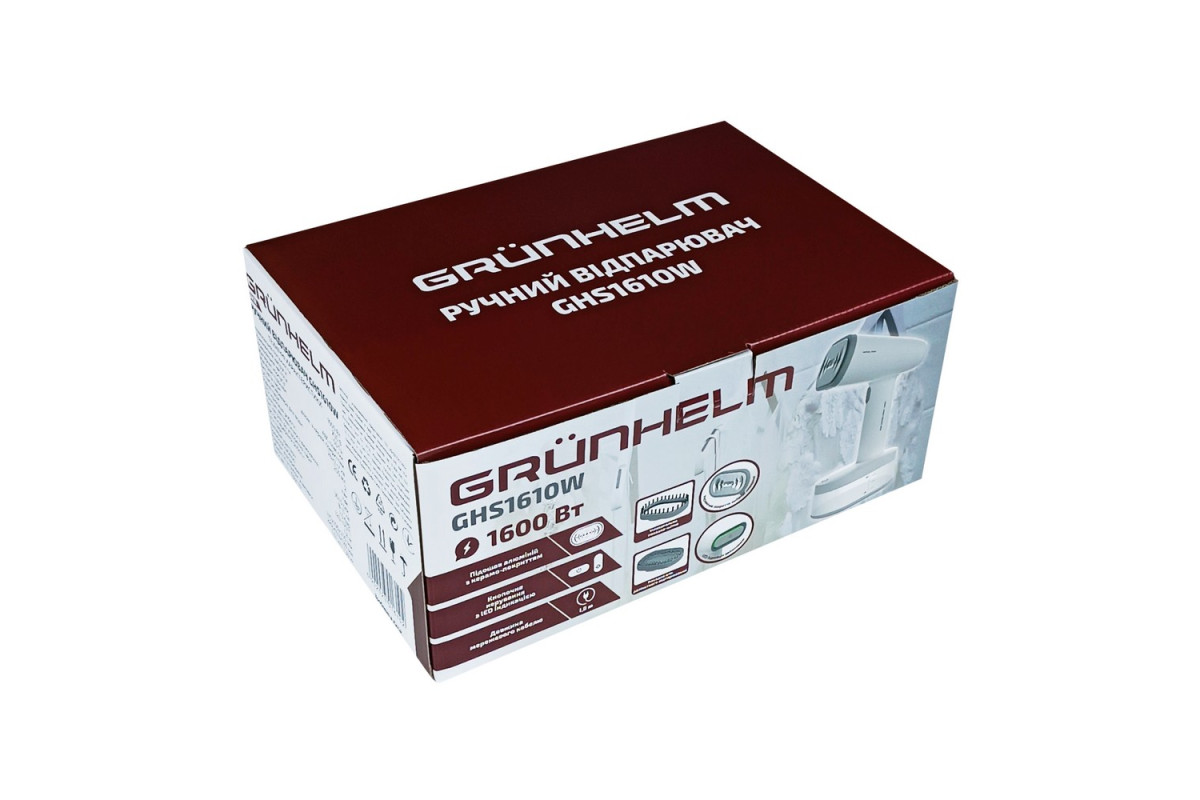 Ручной отпариватель GHS1610W Grunhelm – отпариватель эффективно разглаживает любые складки на тканях, отлично дезинфицирует одежду, шторы, постельное белье. Корпус отпаривателя выполнен из пластика, а подошва – из нержавеющей стали. Модель работает по принципу вертикального отпаривания.