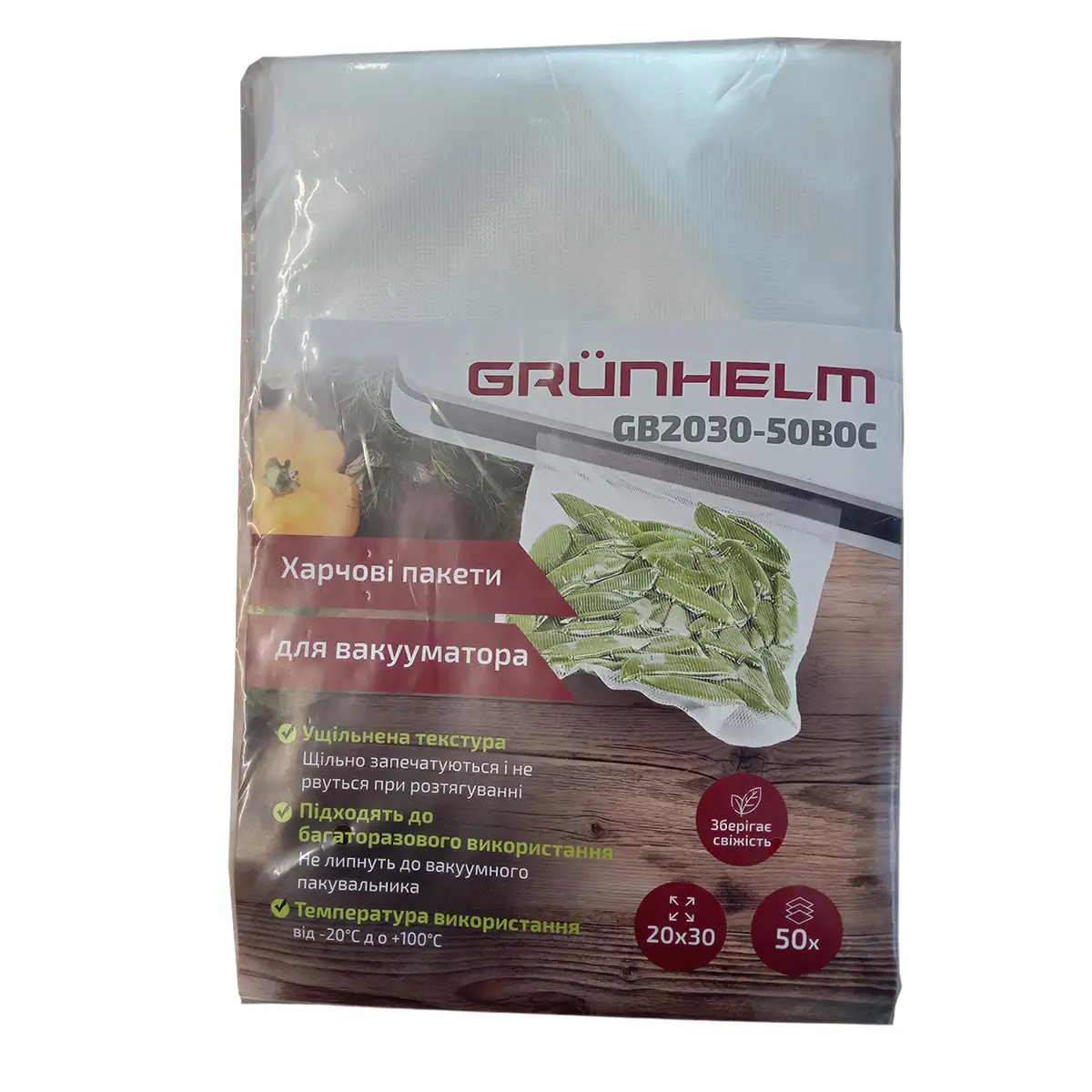 Пищевые пакеты для вакууматора GB2030-50BOC 20х30 см – 50 шт/уп. Grunhelm