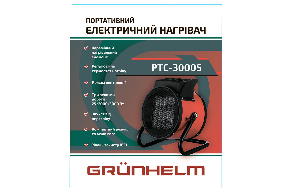 1 годТепловая пушка электрическая - РТС-3000S (3.0кВт, 220В) Grunhelm
