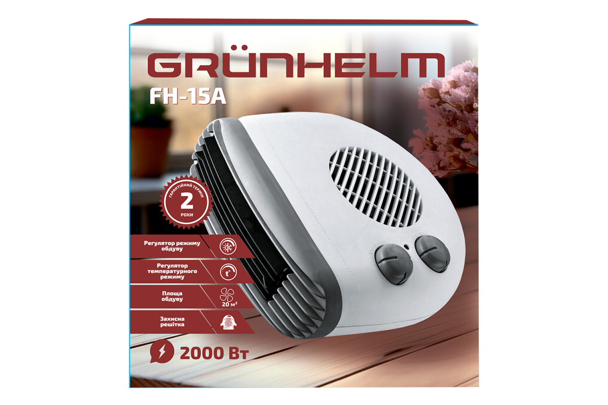 1 кгТепловентилятор электрический – FH-15A (регулируемая мощность до 2000Вт, 220В) Grunhelm