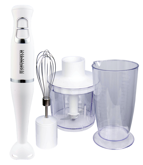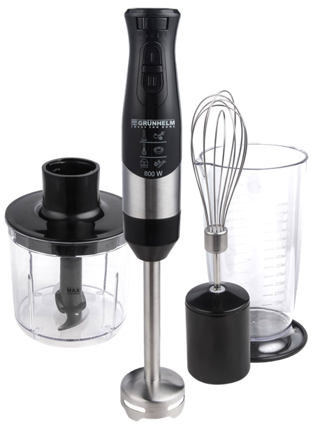 Блендери GRUNHELM купують та використовують найчастіше, адже це реальна заміна кухонного комбайна. Подрібнювач, блендер, вінчик, насадка для пюре, вакуумний насос дозволяють робити фарш та тісто, пюре та смузі, молоть каву, дробити лід та робити купу інших речей. Пристрій зручно зберігати на невеликій кухні та перевозити з місця на місце.