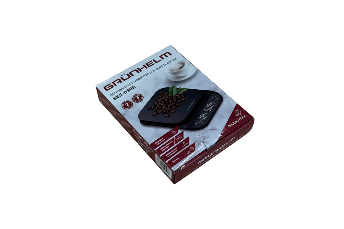 Ваги кухонні з таймером для кави та спецій - KES-030B (чорнi, прямокутні, макс-3кг) Grunhelm