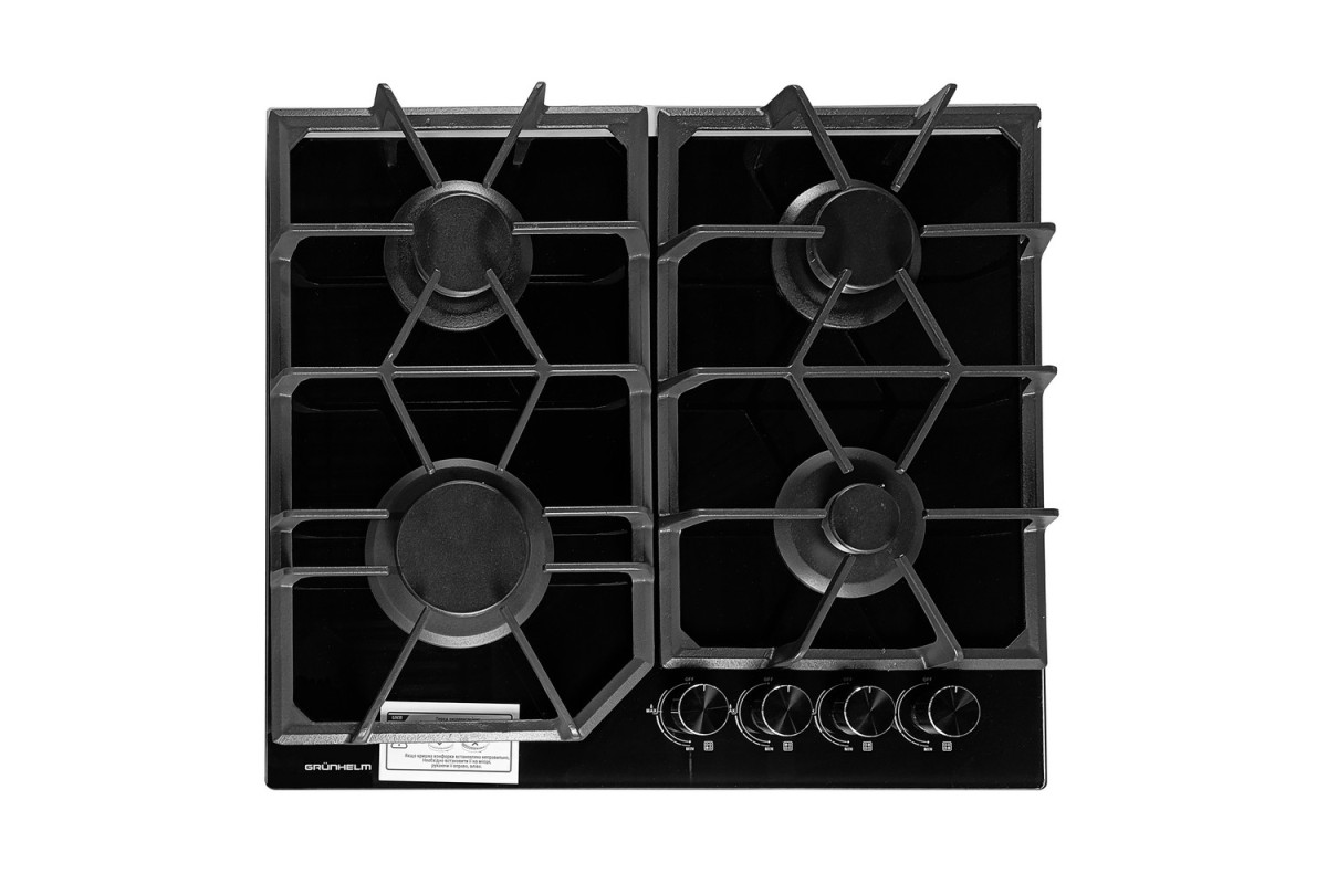 Варильна поверхня GHG 0434 MB газ скло 4 к. газконт. Grunhelm